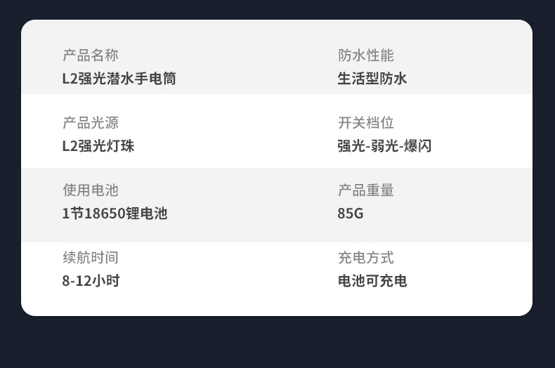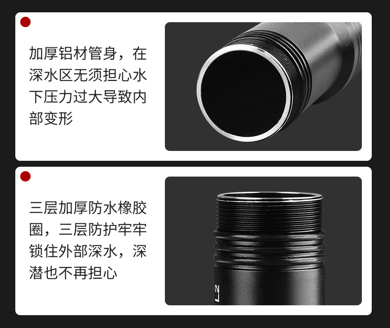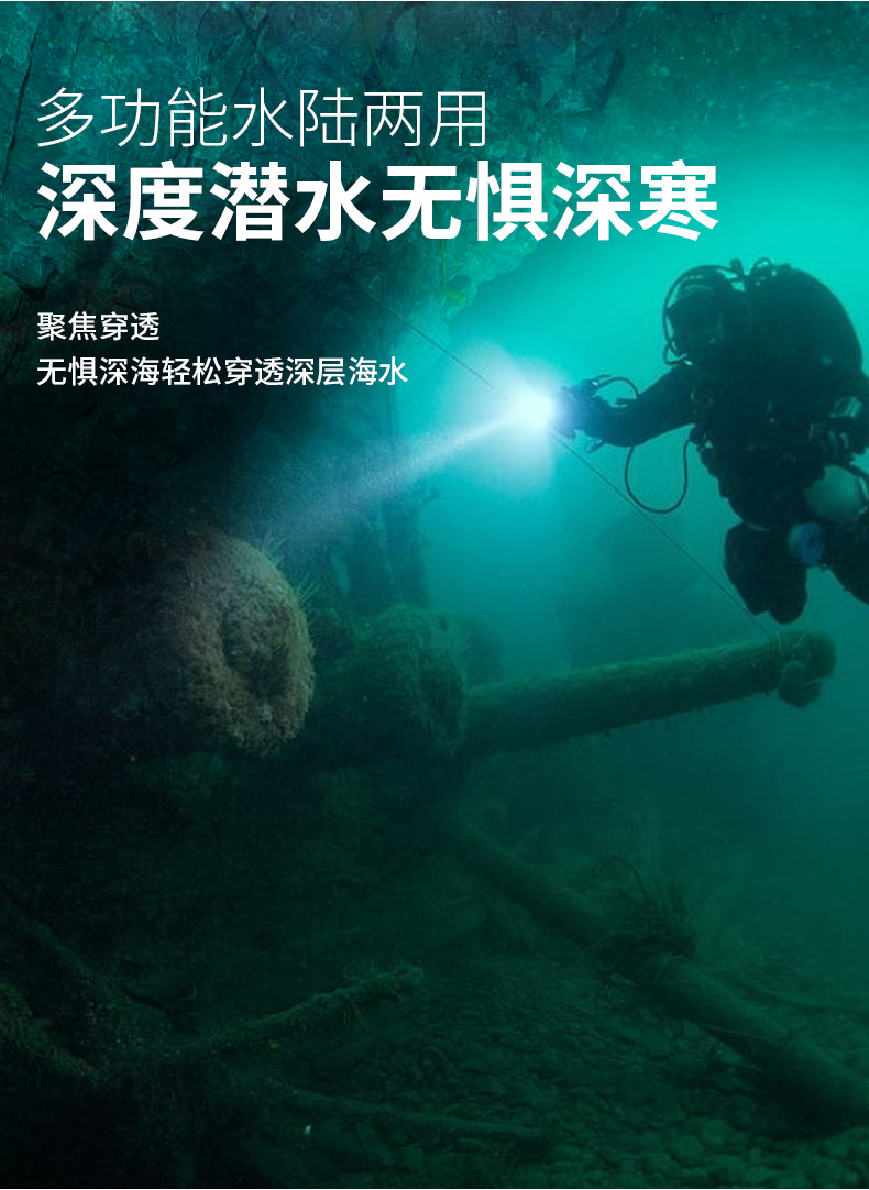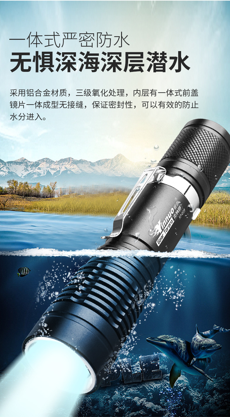 Waterproof Flashlight Strong Light Diving Professional Outdoor Super Bright Long Shot Rechargeable Sea Driving Durable Drop-Resistant Small Portable