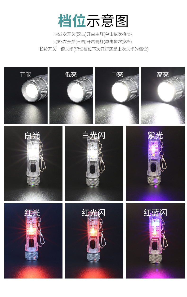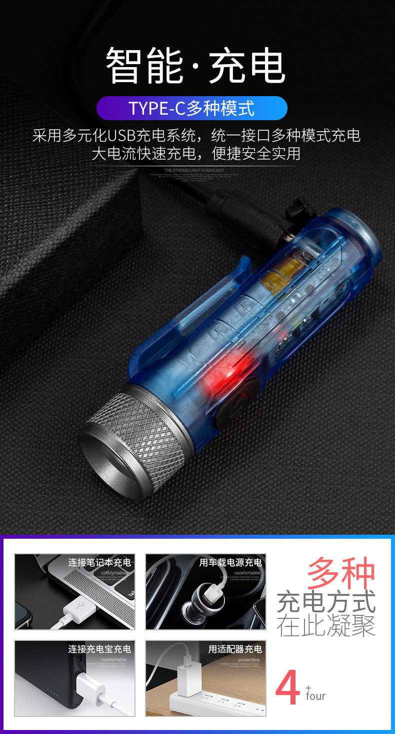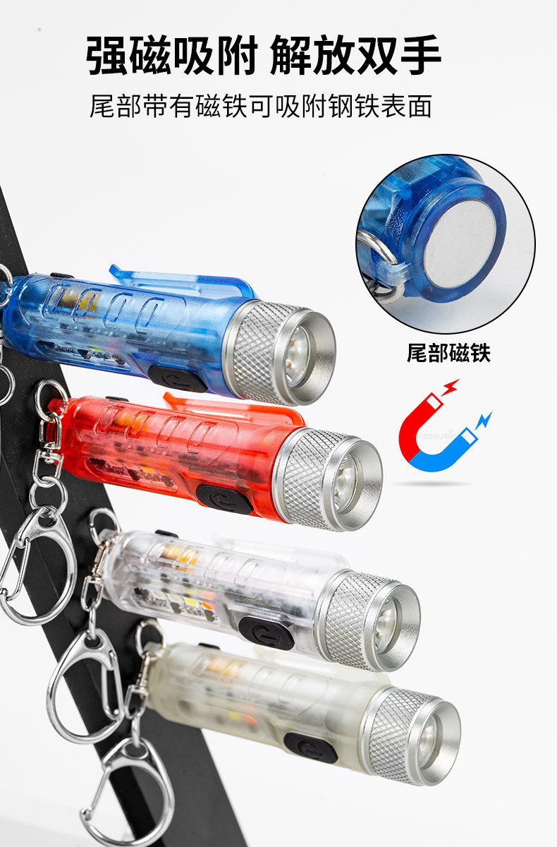 New Four-Color Mini Torch Type-C Rechargeable Portable Magnetic Clamp Cap Multifunctional Work Light