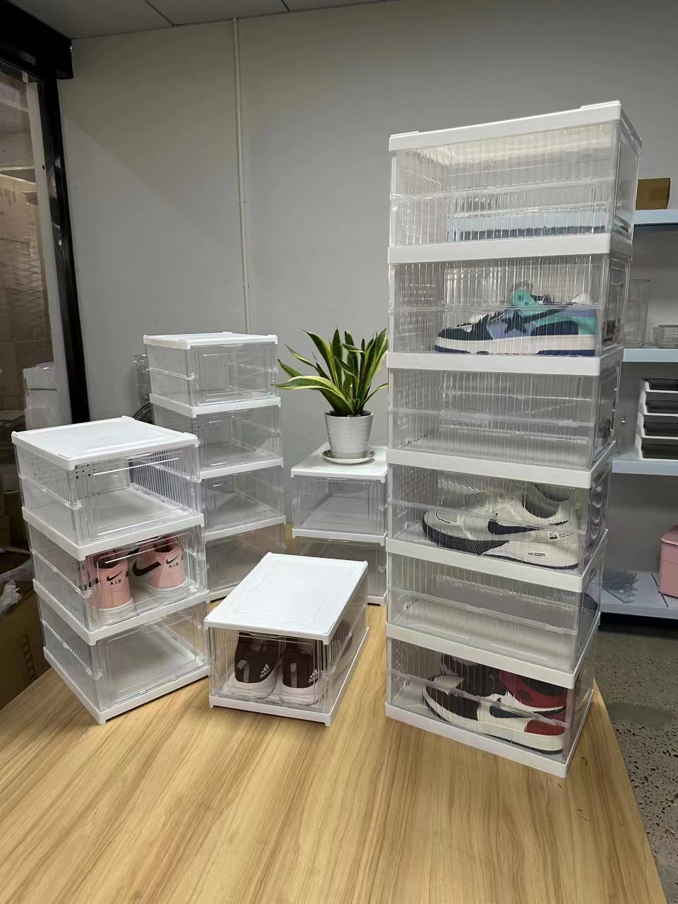 upgraded pp transparent folding shoe box three layers