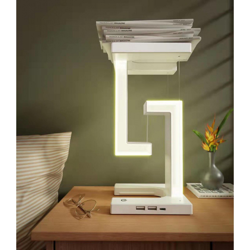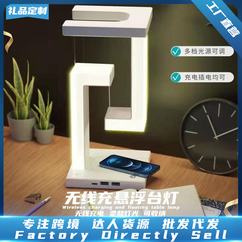Suspended anti-gravity wireless charger table lamp