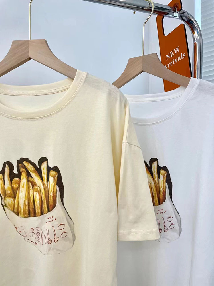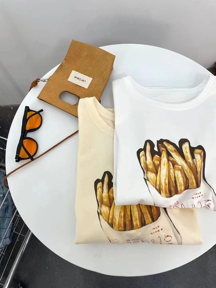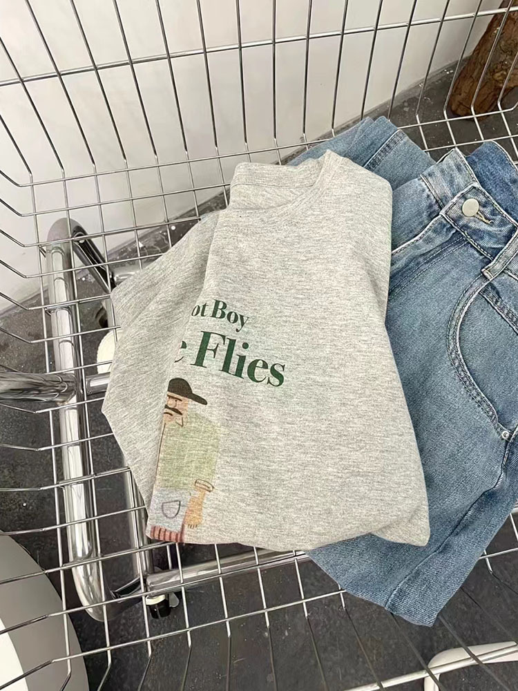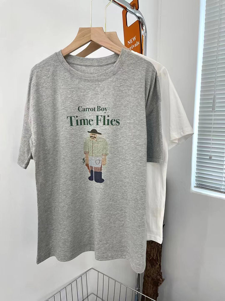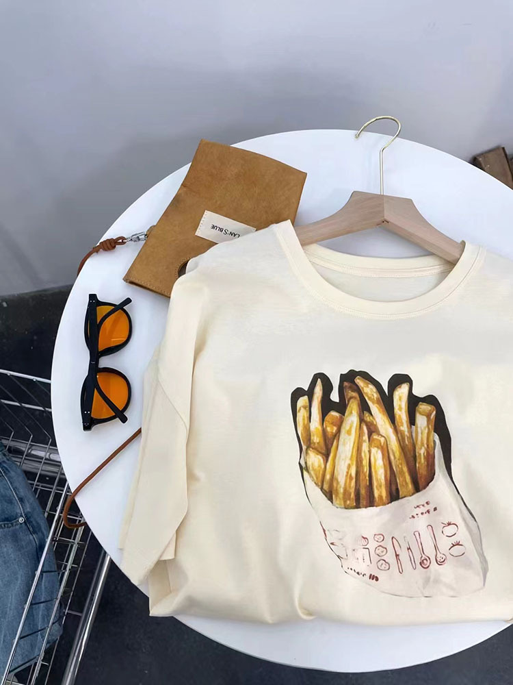 retro cotton short-sleeved t-shirt for women ins trendy women's summer loose-fitting casual round-neck t-shirt korean style top wholesale