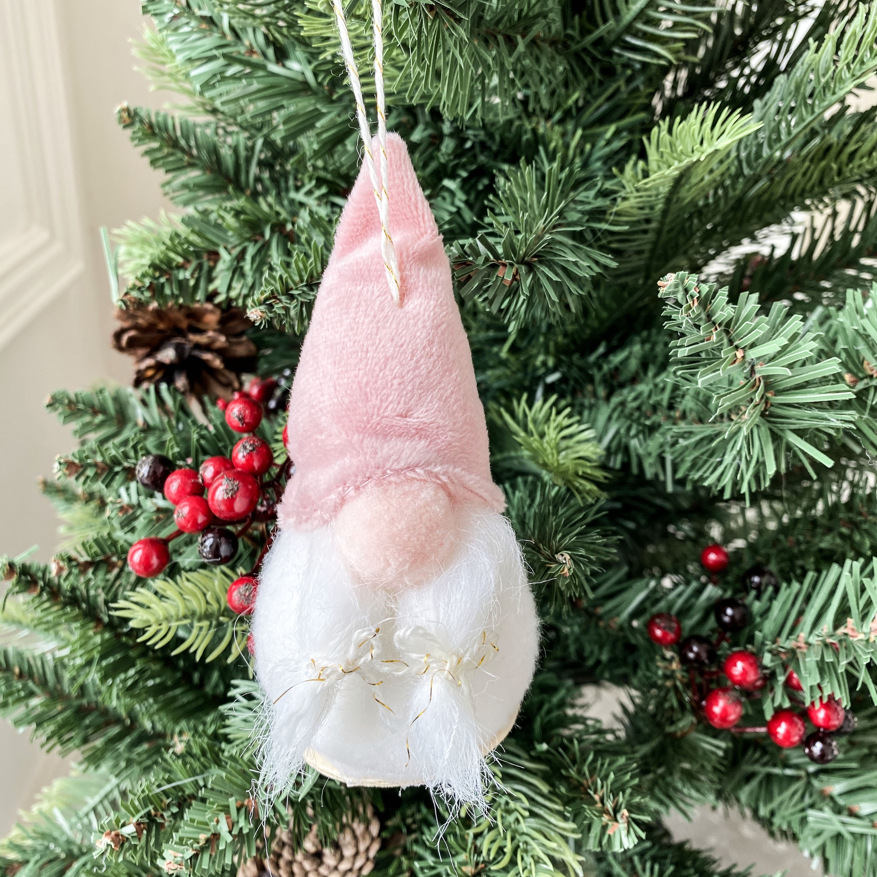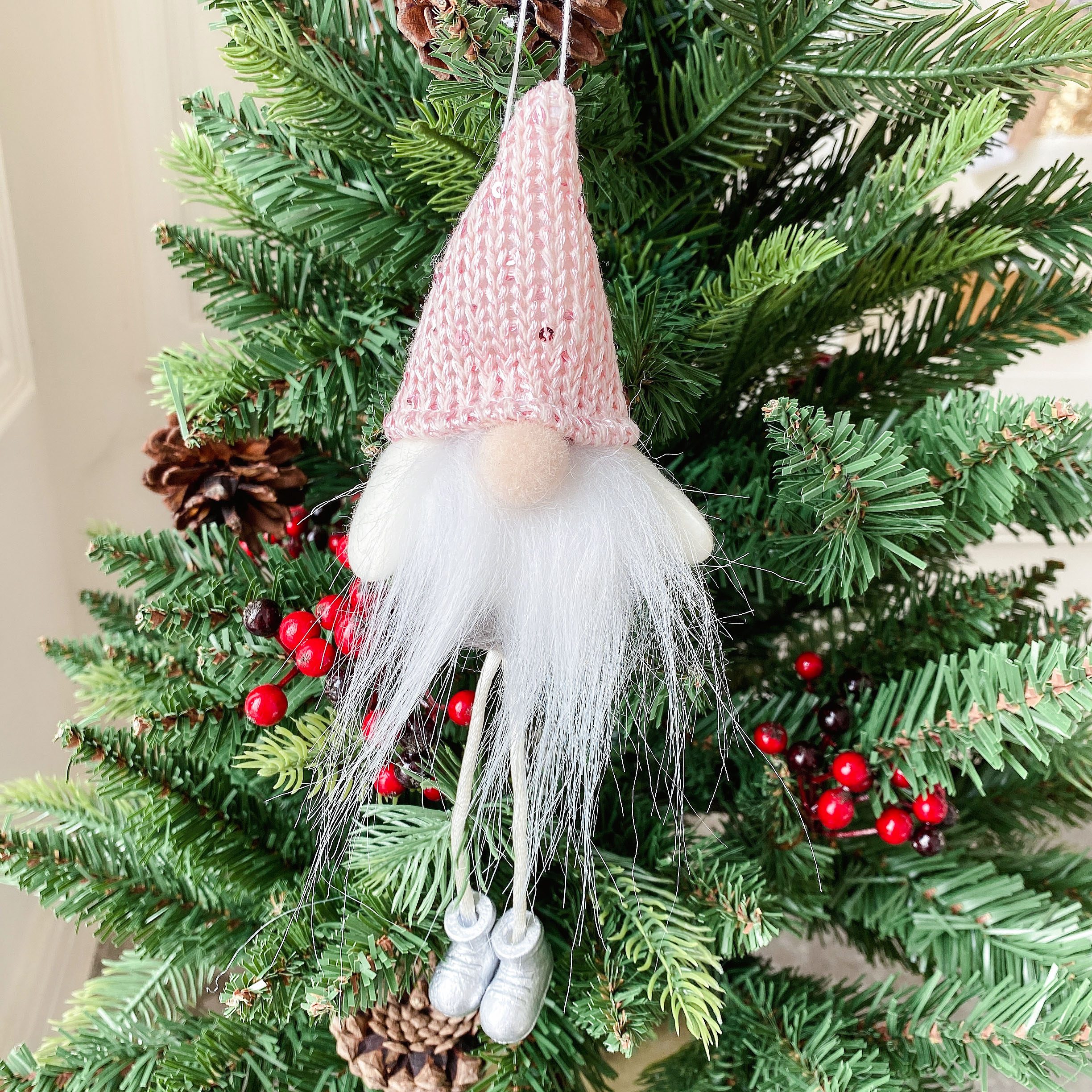 pink hat hanging leg forest elderly