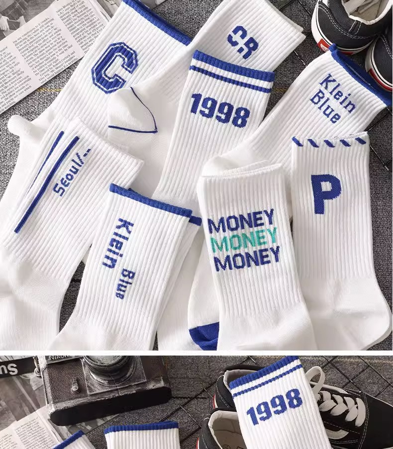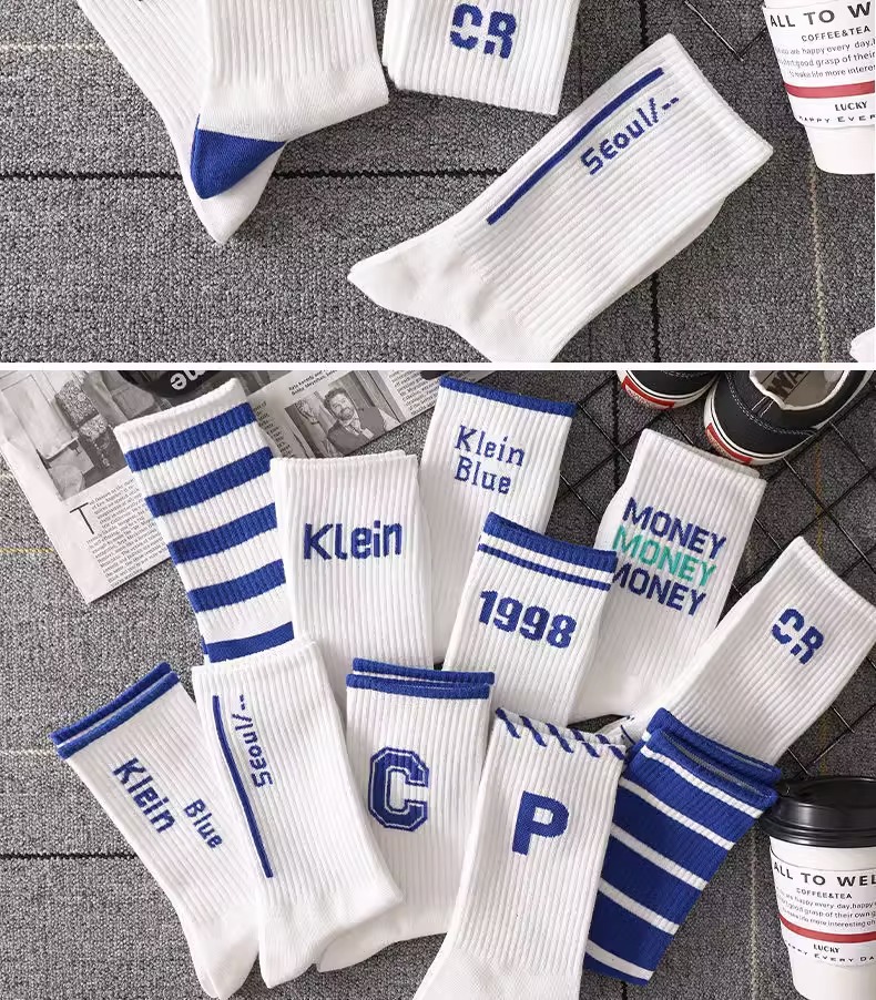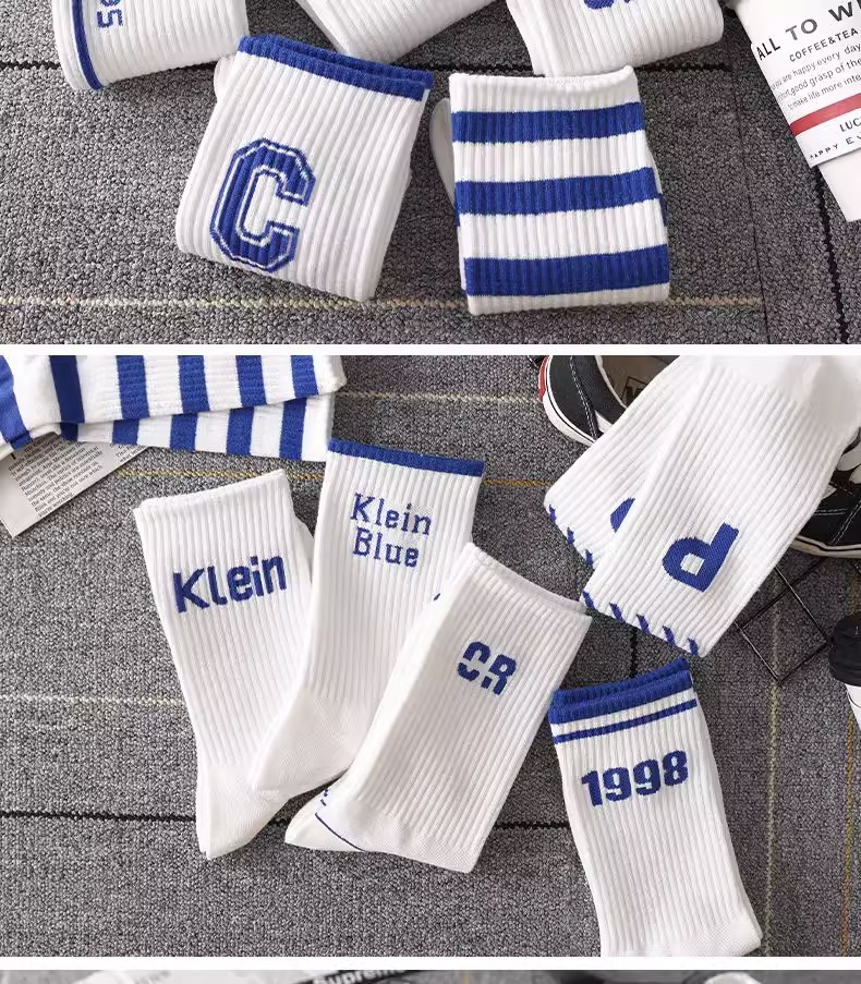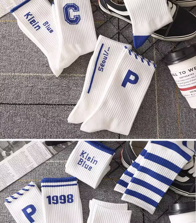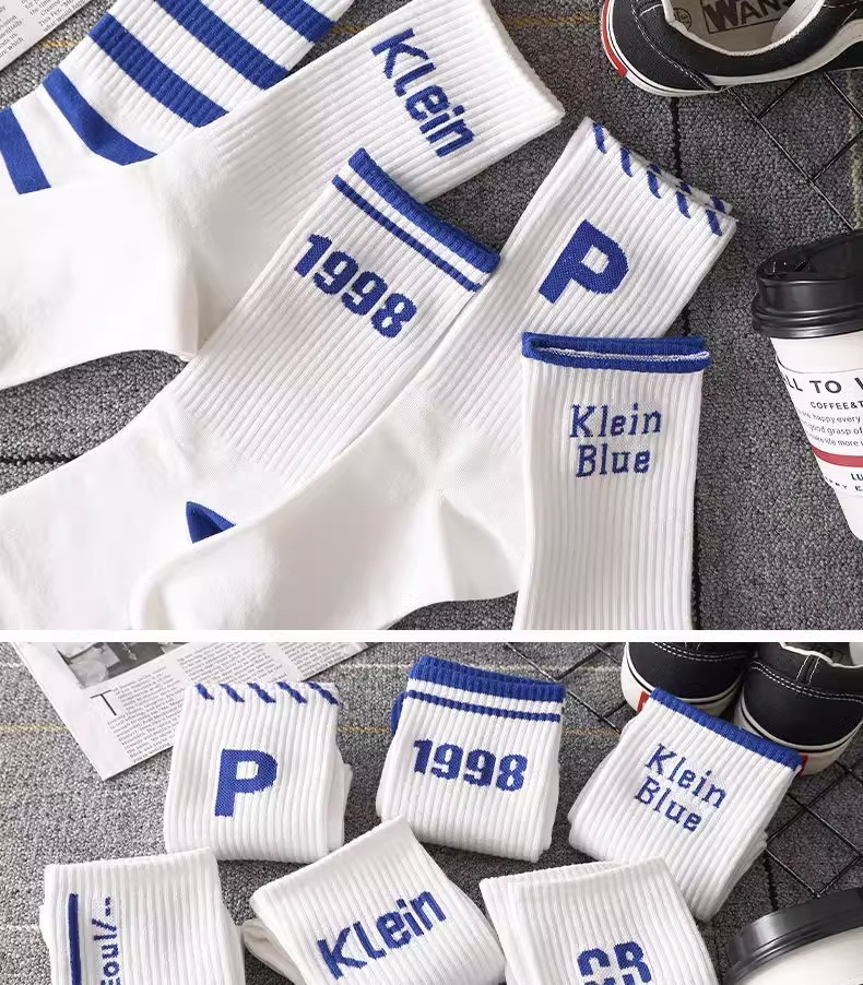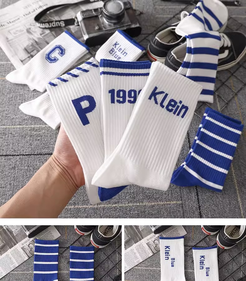 Klein Blue Socks Men's Mid-Calf Versatile Ins Trendy Long Deodorant Sports Basketball Socks Men's Autumn and Winter Stockings