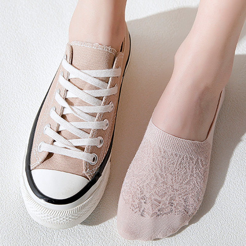 Sole Women's Boat Socks Invisible Non-Slip Tight Spring and Summer Thin All Cotton Pure Cotton Mesh Low Cut Sock Women's Summer