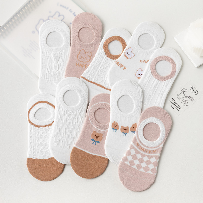 Women's Invisible Socks Summer Thin Breathable Women's Low-Top Ankle Socks Non-Slip Tight Summer Pink Socks