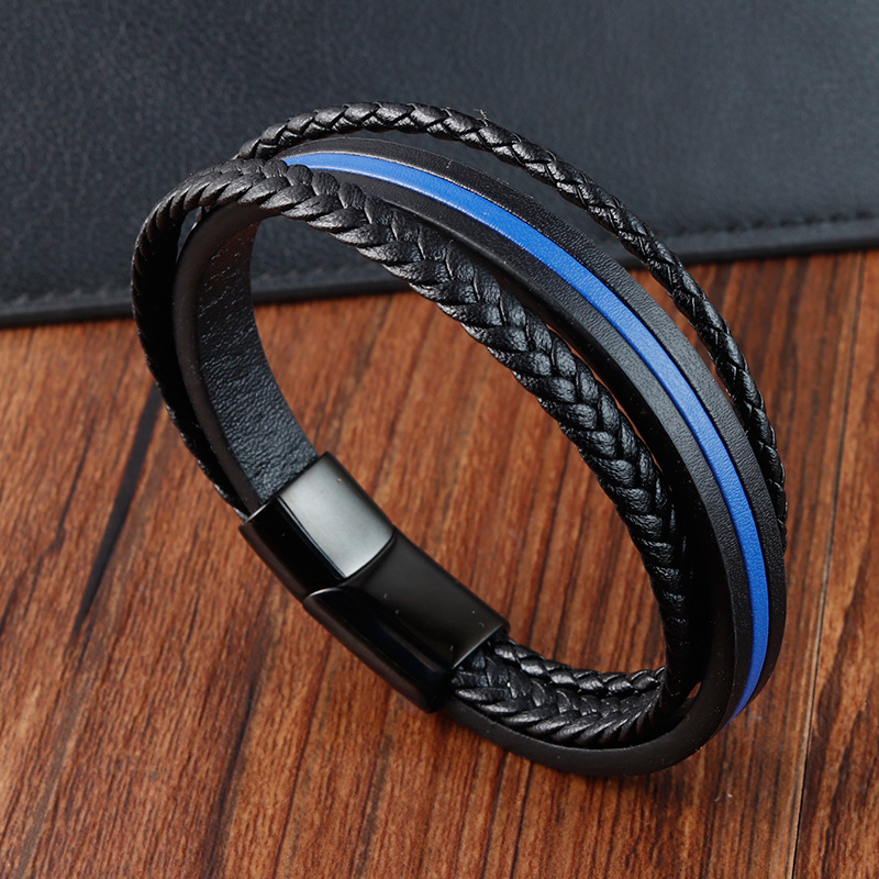 E-Commerce Best-Selling Male Student Stainless Steel Leather Woven Bracelet Simple Fashion Leather Rope Wristband Bracelet L20262