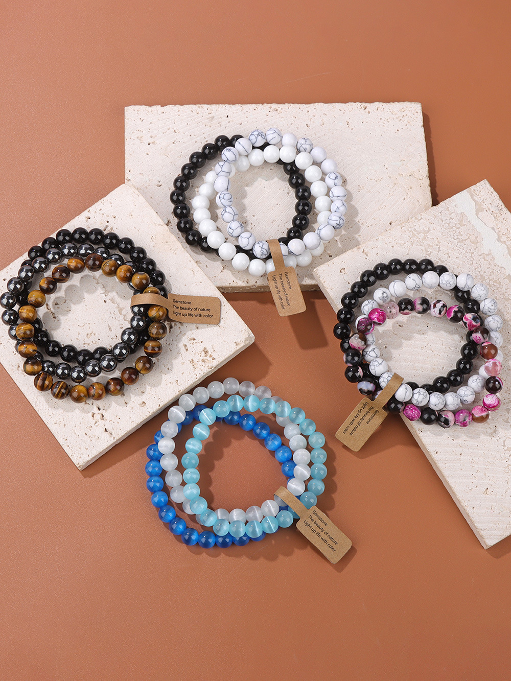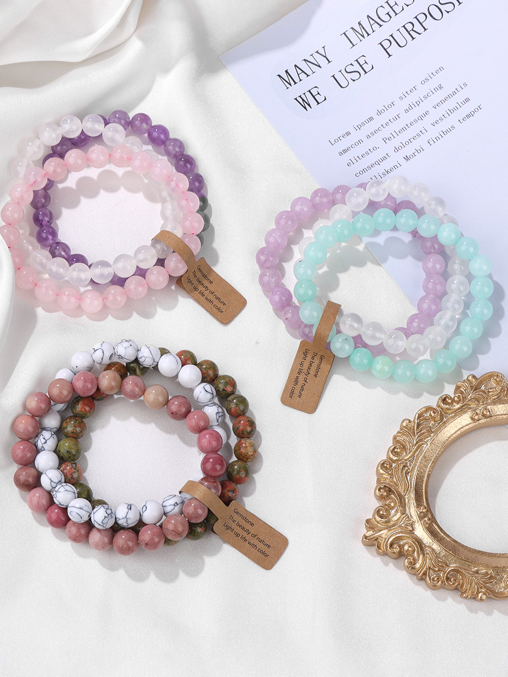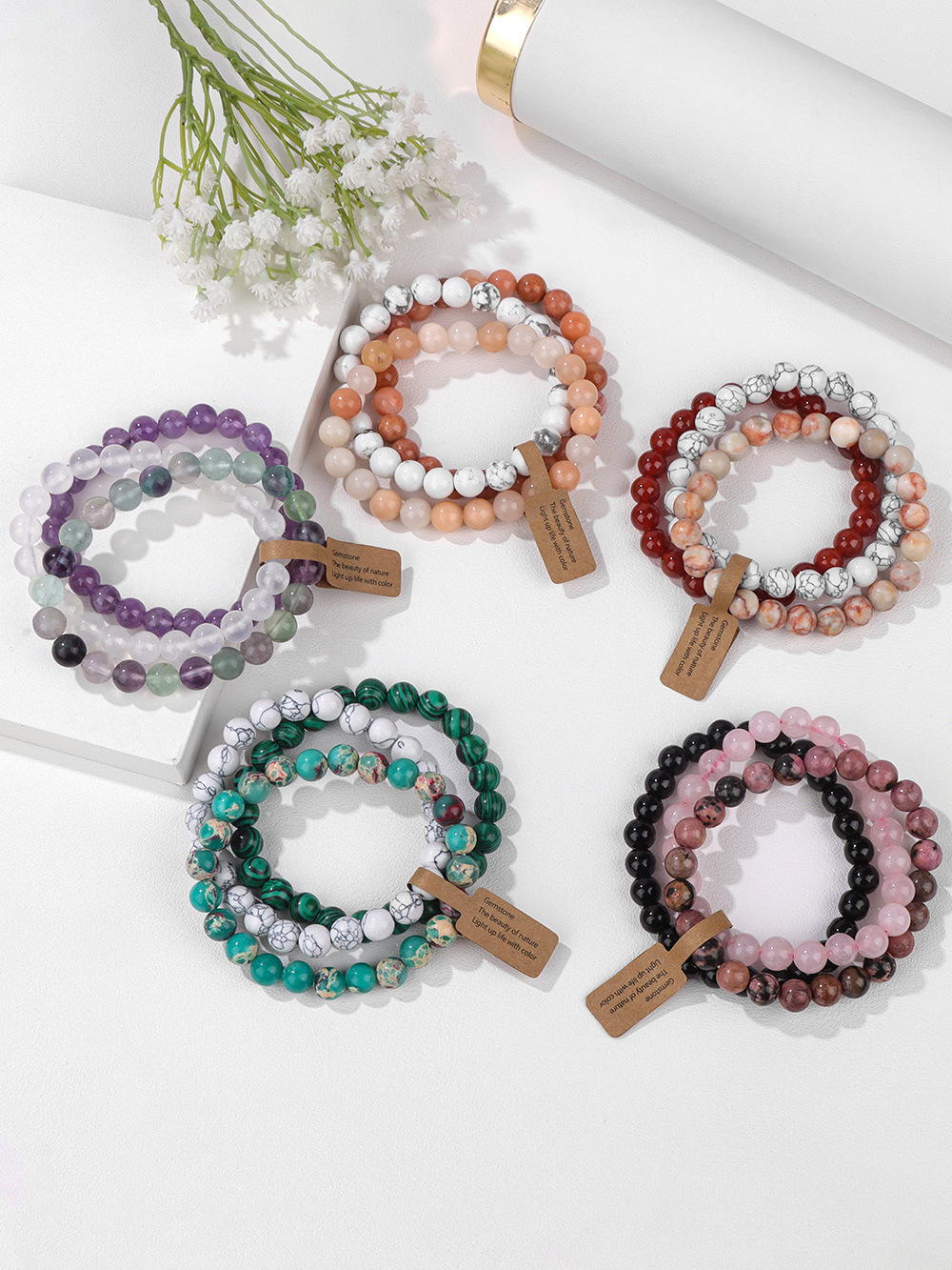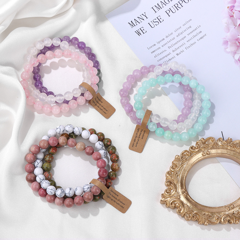 Natural Stone Crystal Beads Semi-Precious Stone Women's Bracelet Amethyst Multi-Layer Combination Bracelet Amazon Wish Hot Sale