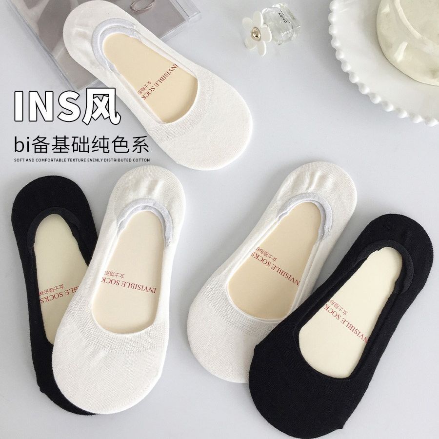 Women's Socks Summer Boat Socks Non-Slip Tight Thin Invisible Socks All-Match Socks Black and White Classic Trendy Ins