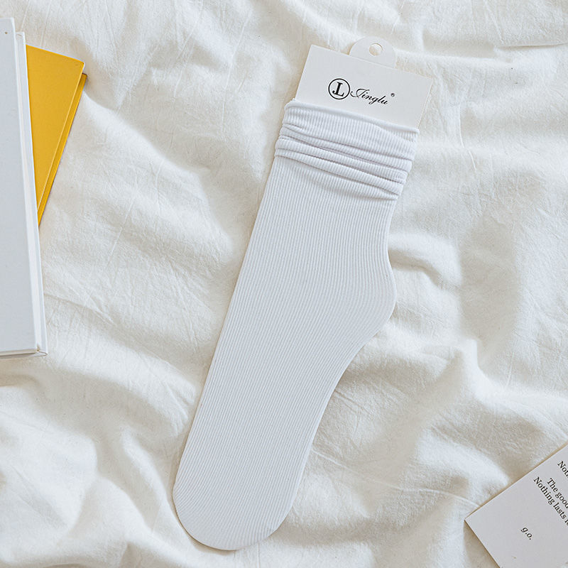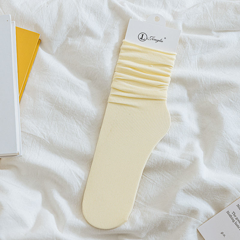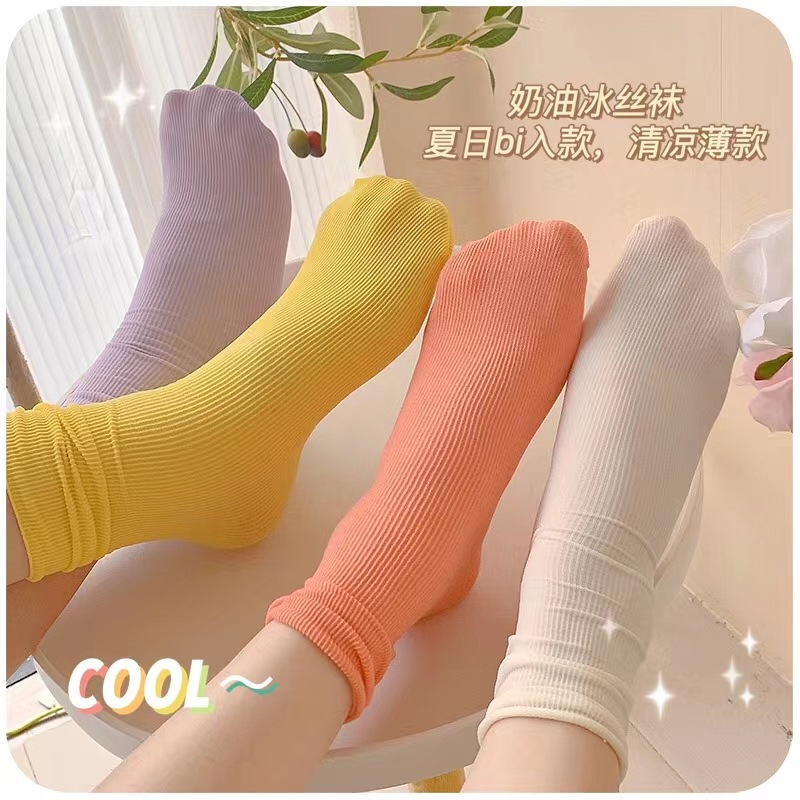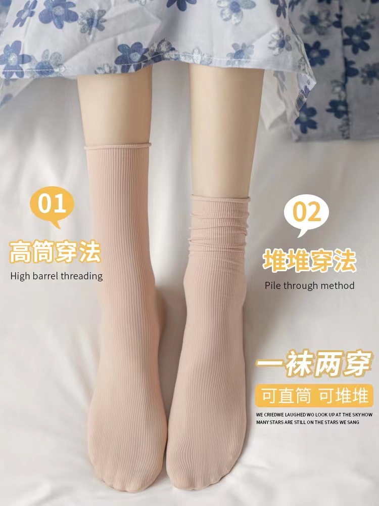 Cream Color Ice Socks Women's Summer Thin Velvet Mid-Calf Socks Ins Trendy Spring and Summer JK Bunching Socks