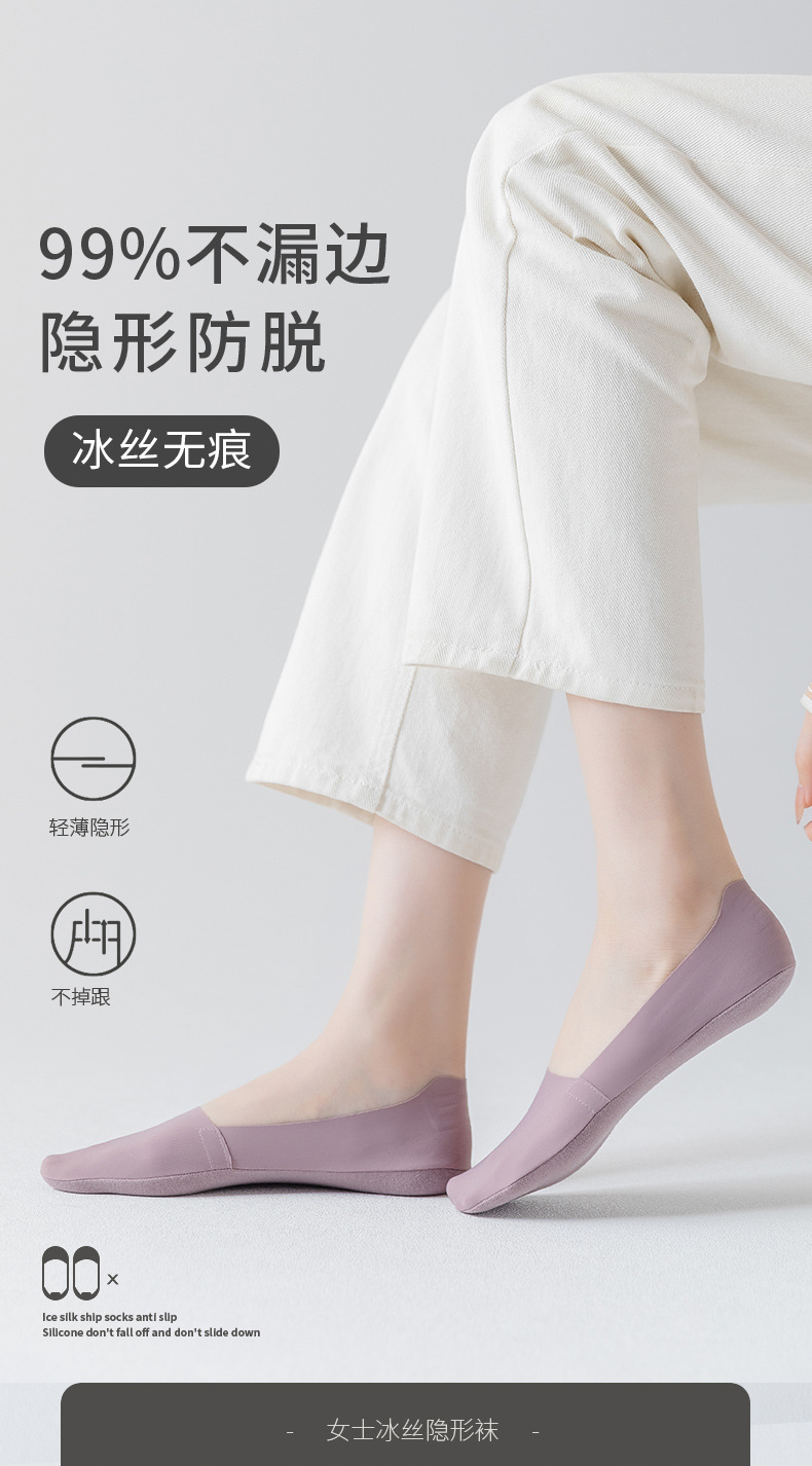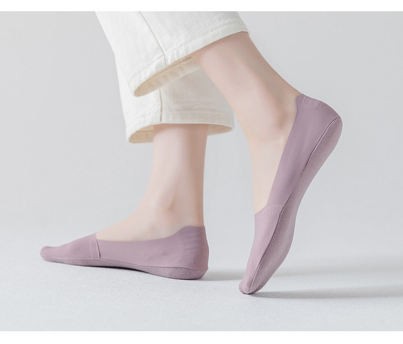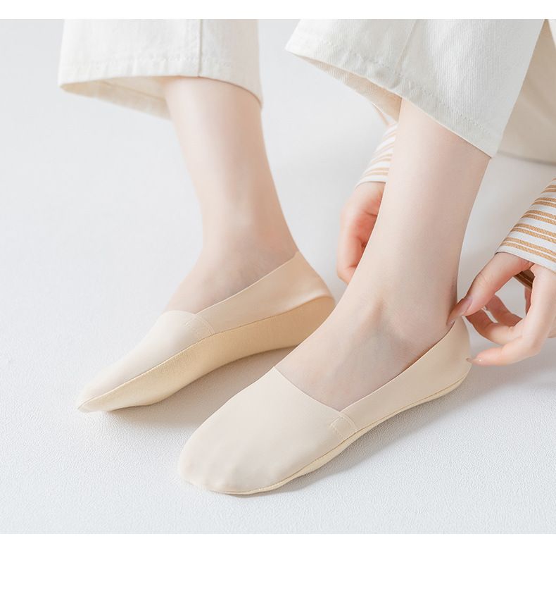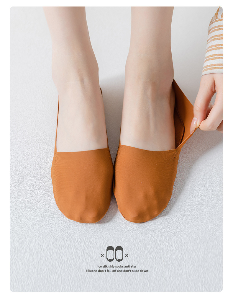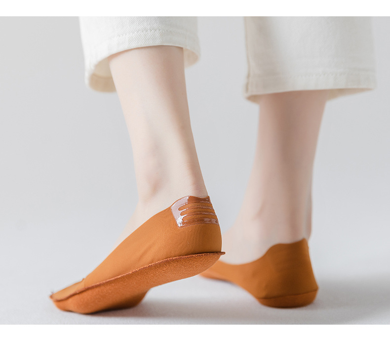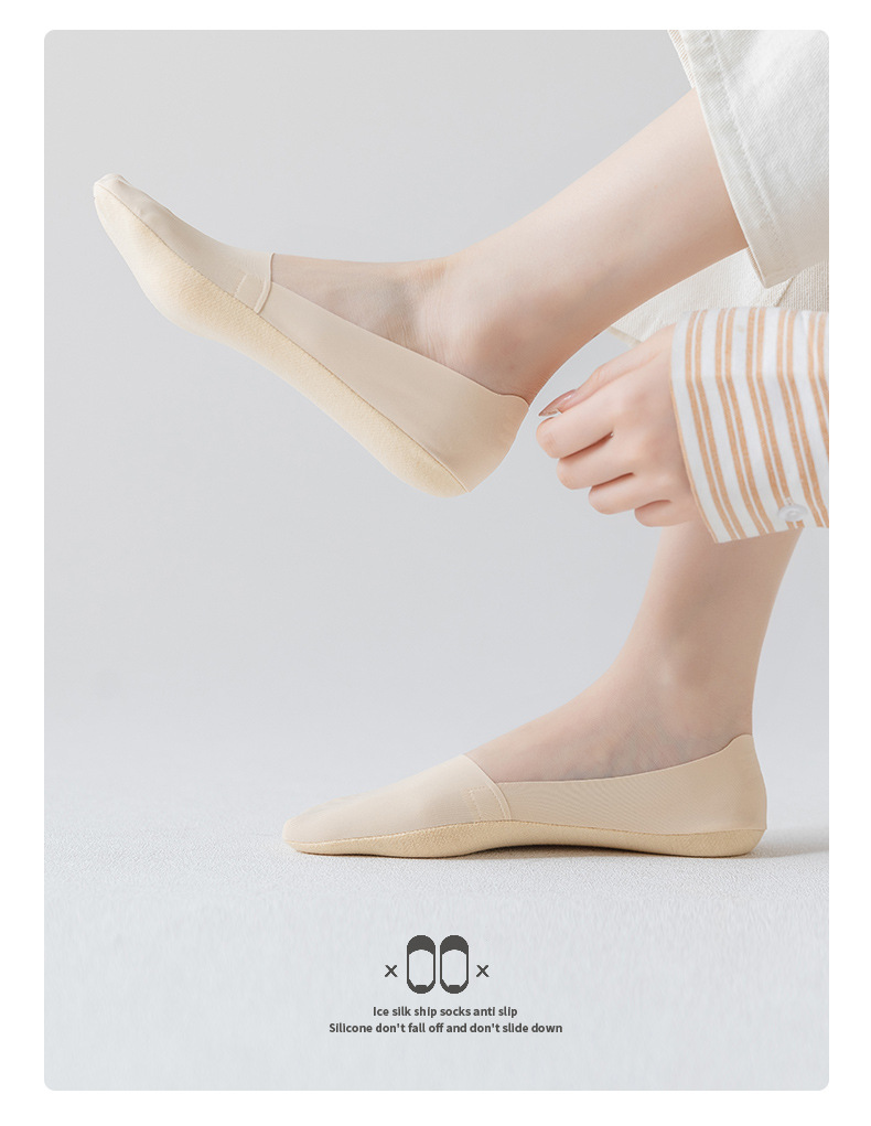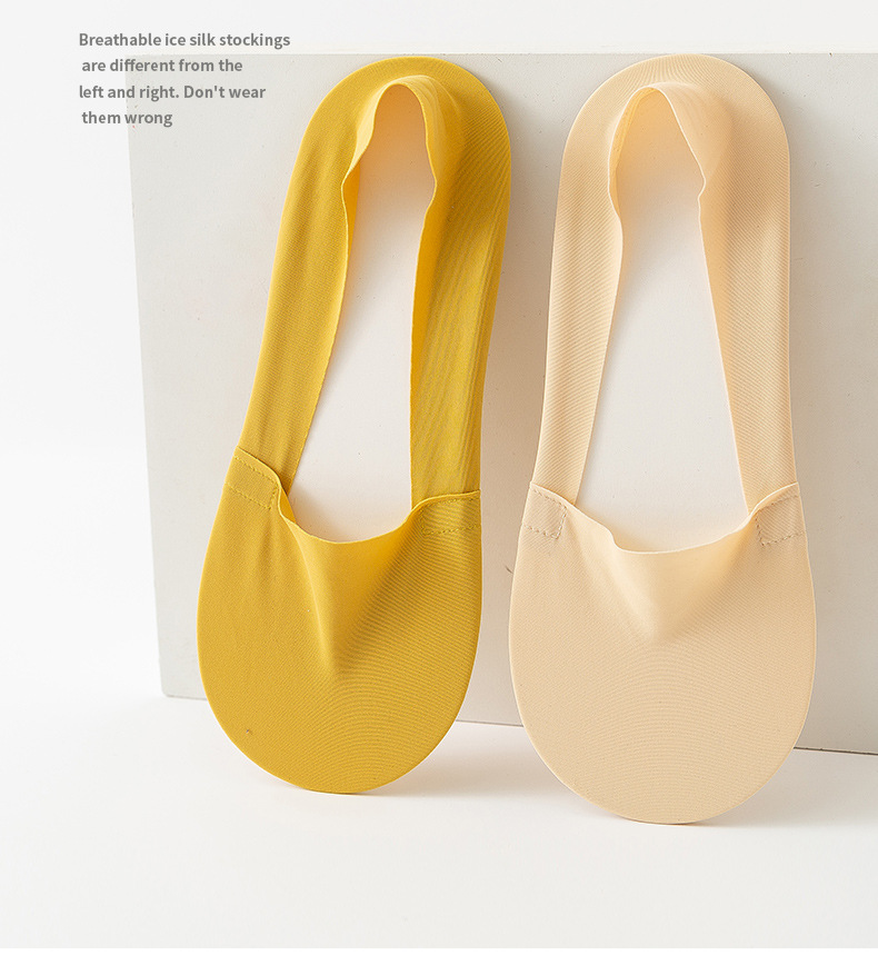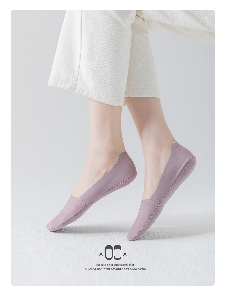 Women's Silicone Non-Slip Socks Shallow Mouth Invisible Spring and Summer Cotton Base Socks Sweet Thin Tight Ice Silk Boat Socks Women