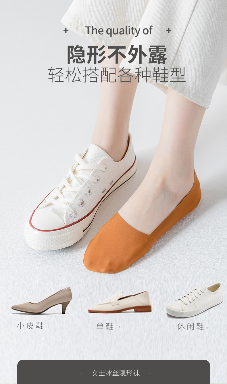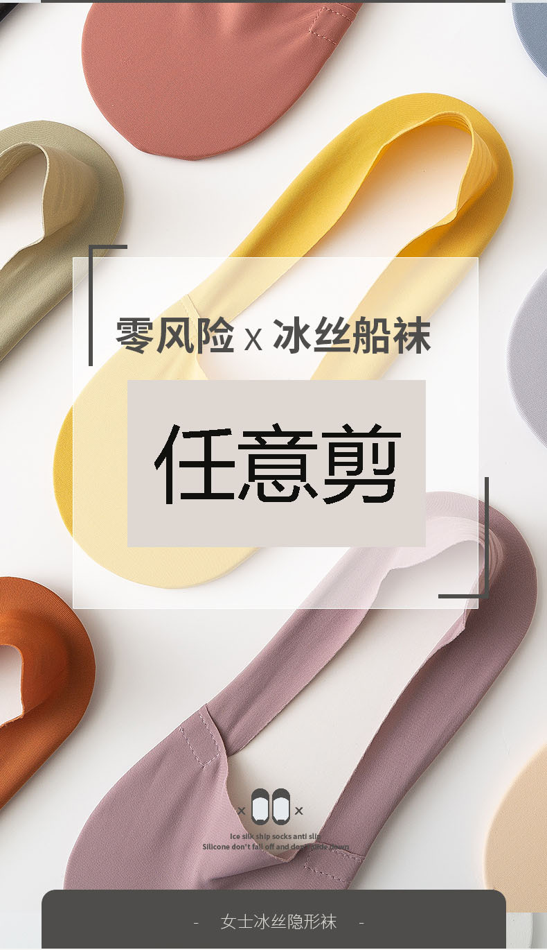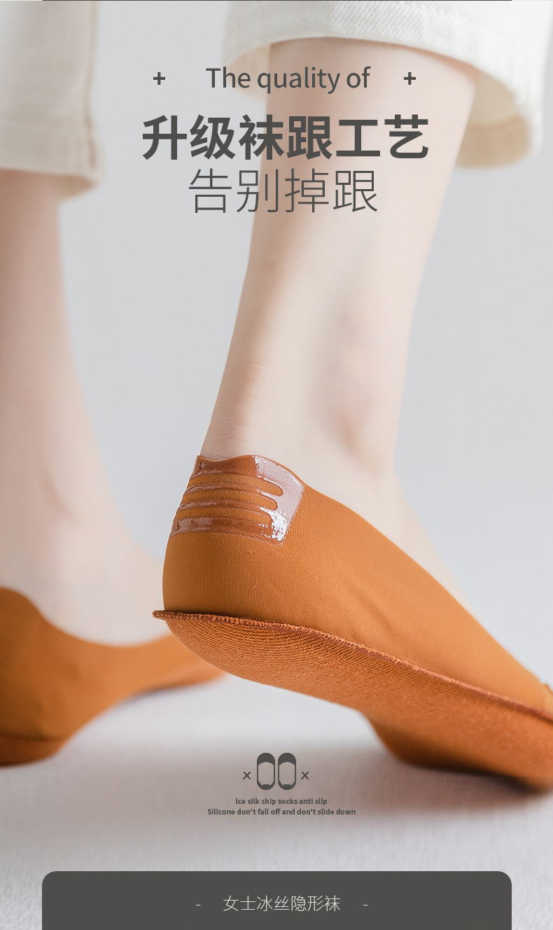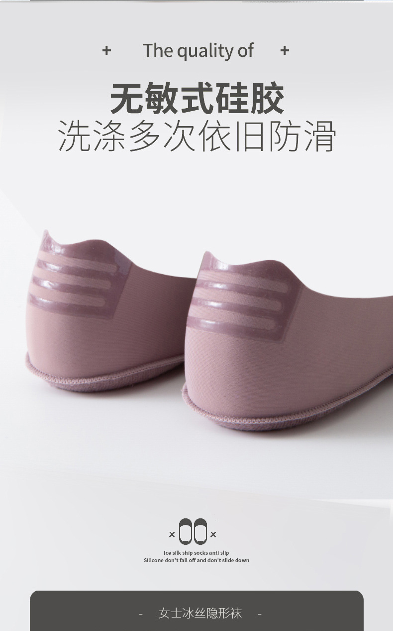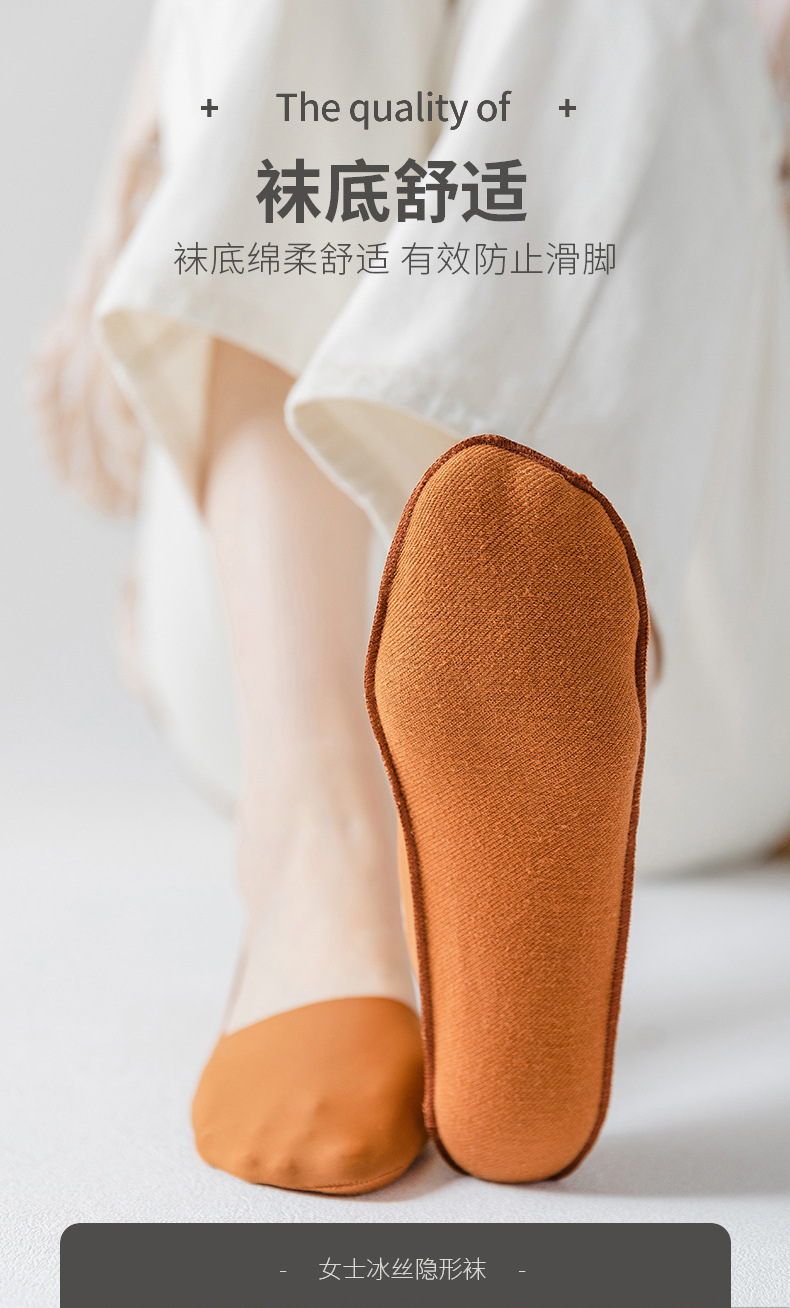 Women's Silicone Non-Slip Socks Shallow Mouth Invisible Spring and Summer Cotton Base Socks Sweet Thin Tight Ice Silk Boat Socks Women