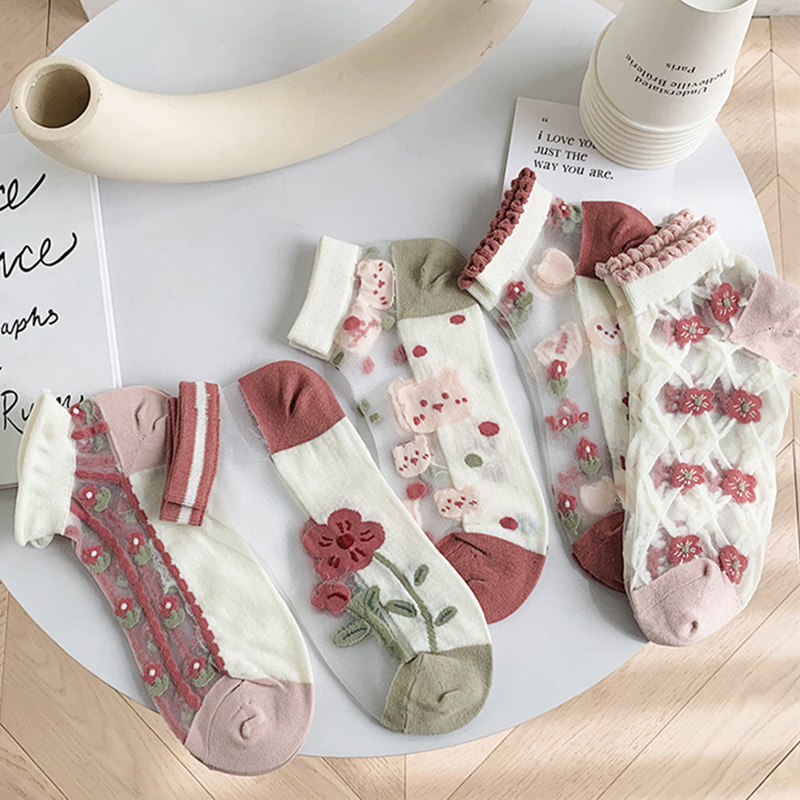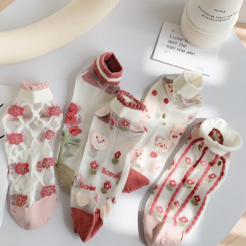 Mercerized Socks Women Pink Socks Summer Summer Ultra-Thin Sandals Women Crystal Glass Card Stockings Women's Boat Socks