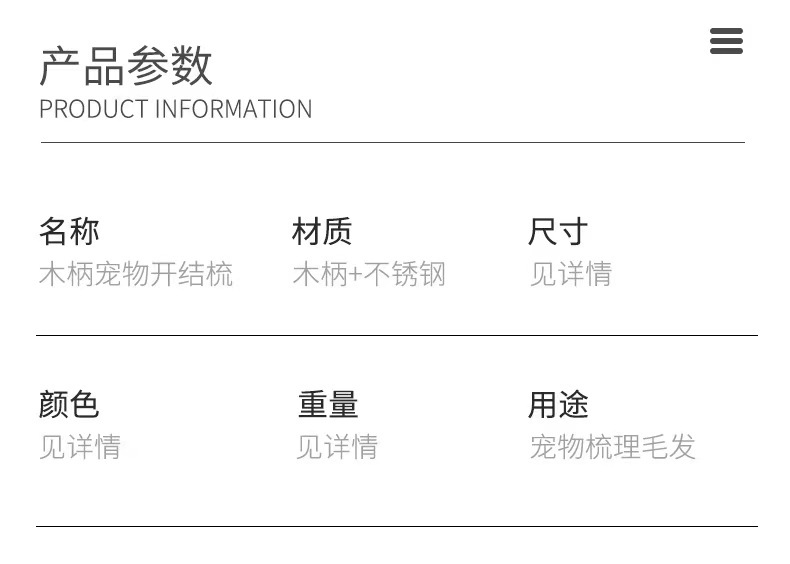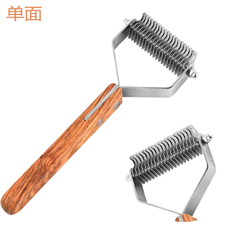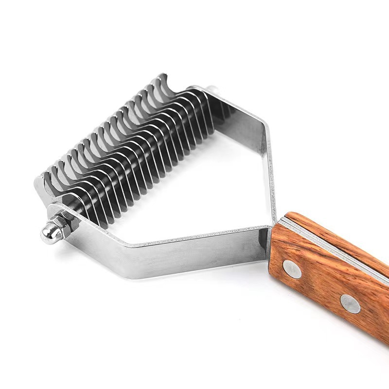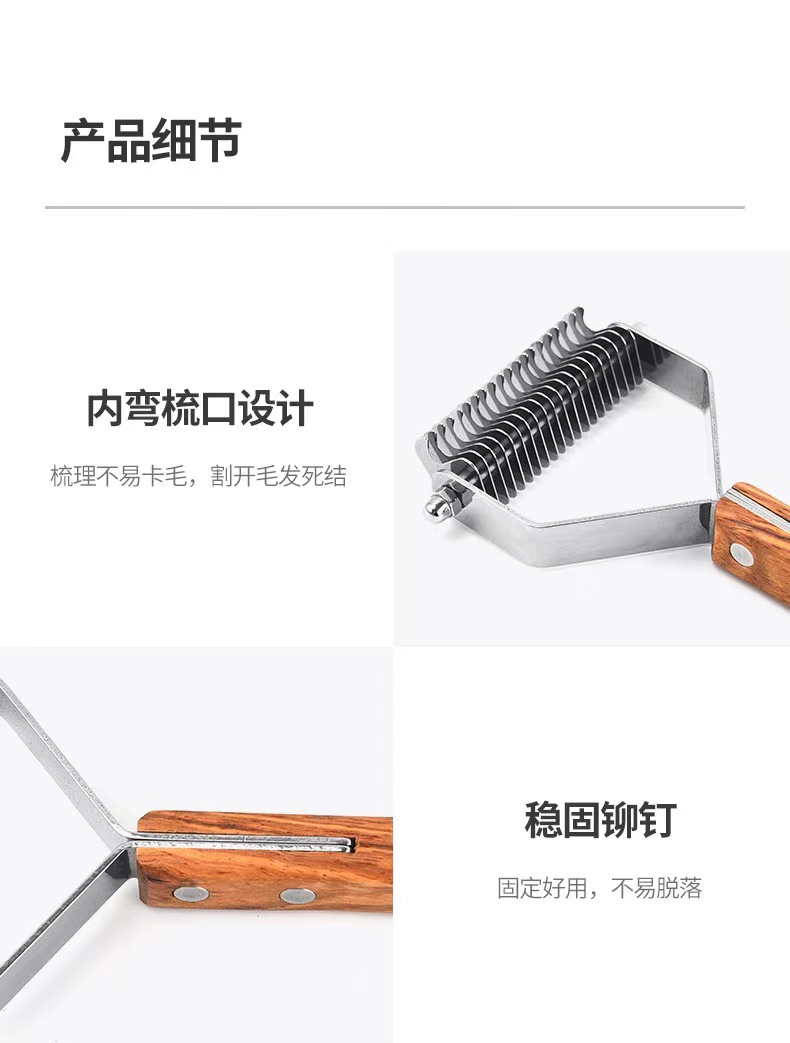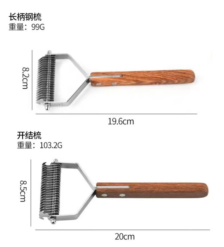 Cross-Border Recommended Pet Comb Wooden Handle Stainless Steel Head Type Household Dogs and Cats Hair Removal Knot Opening Beauty Artifact