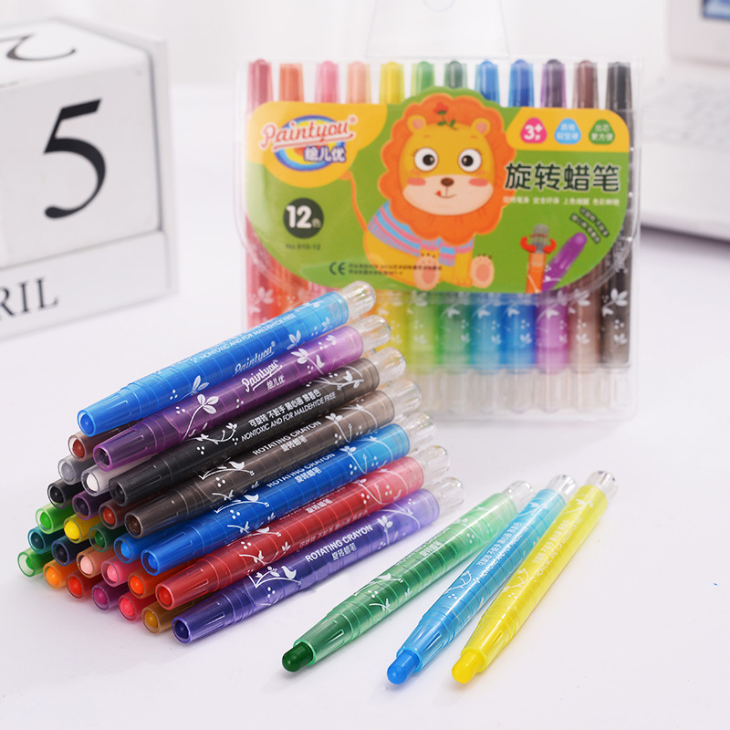 Creative Rotational Crayon Kindergarten Water Soluble Colorful Crayon Set 18/24 Color Art Oil Painting Brush