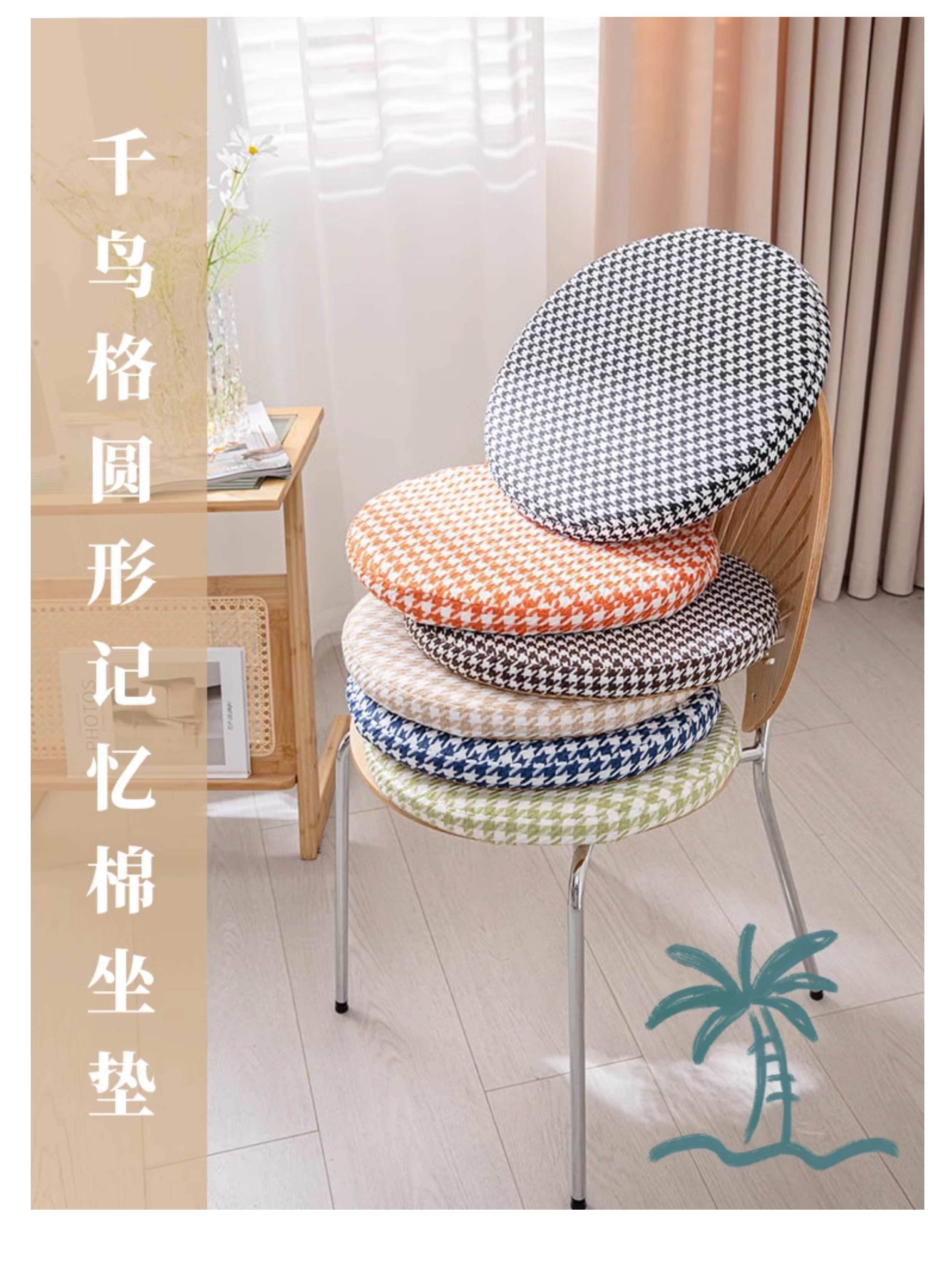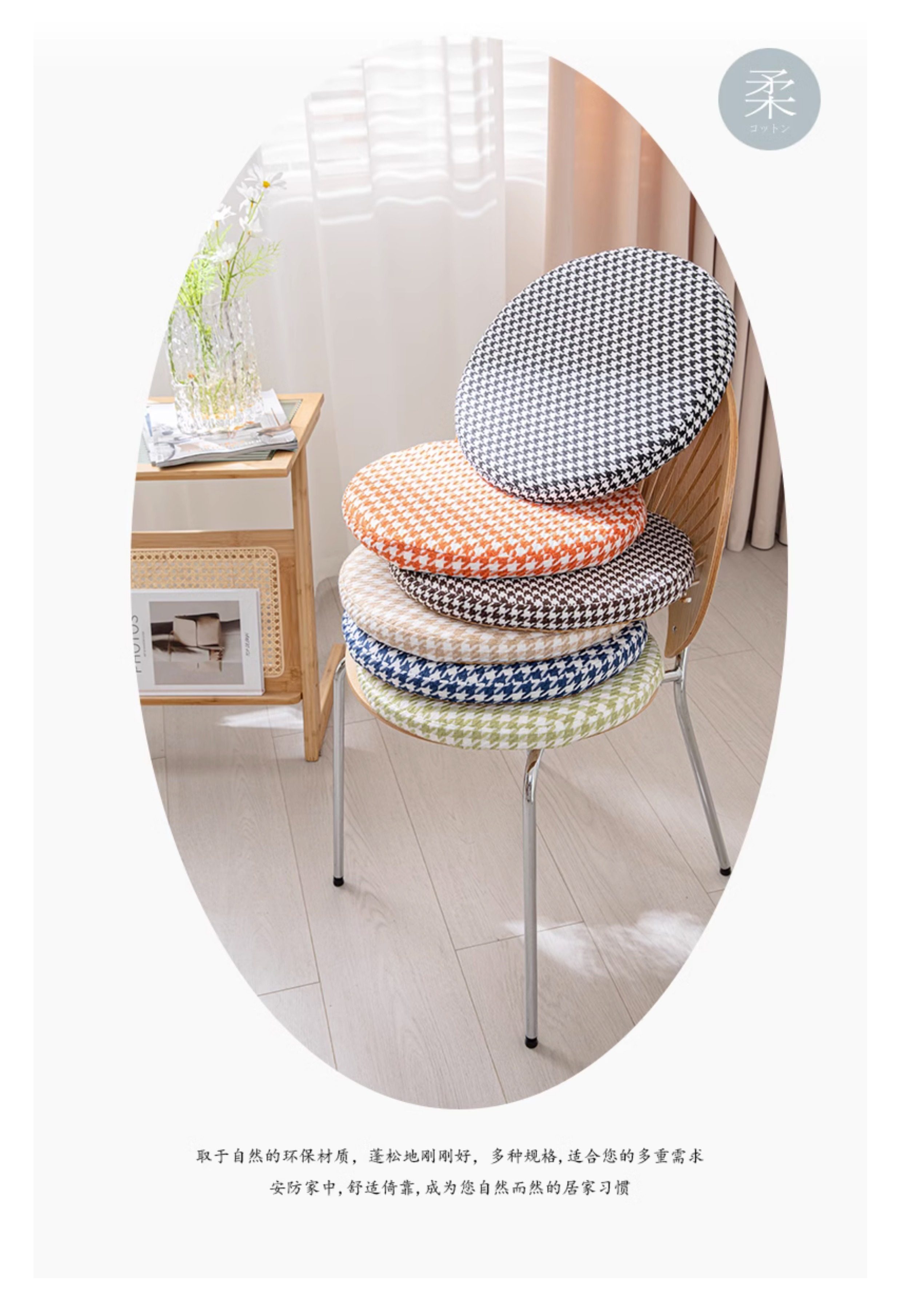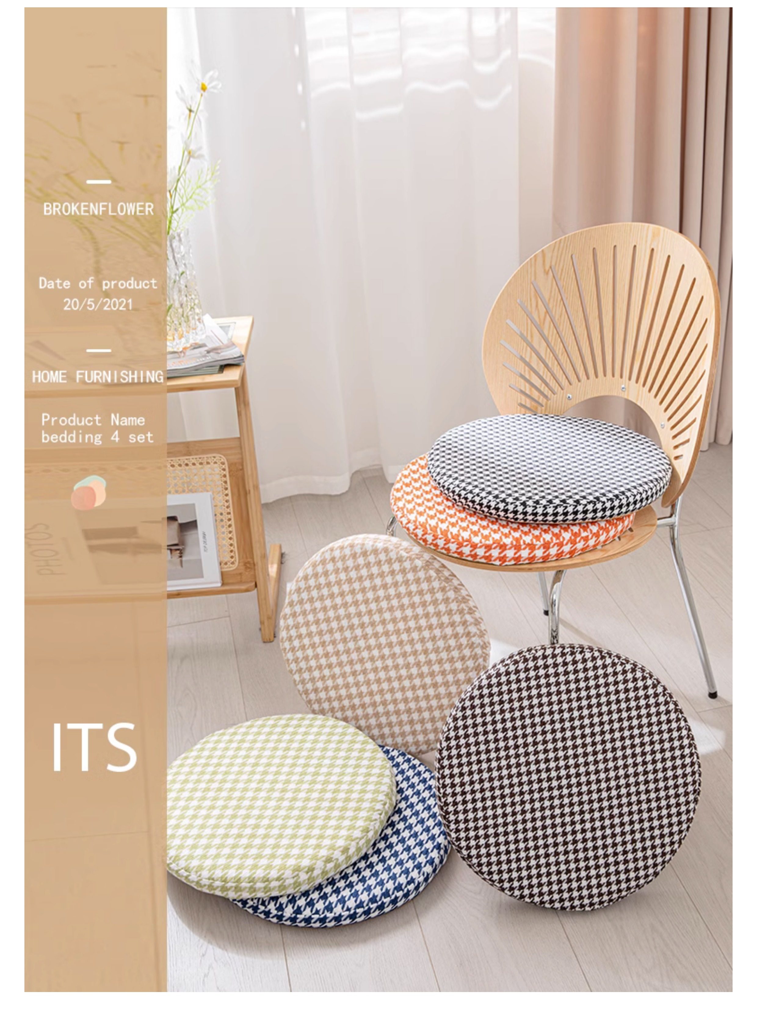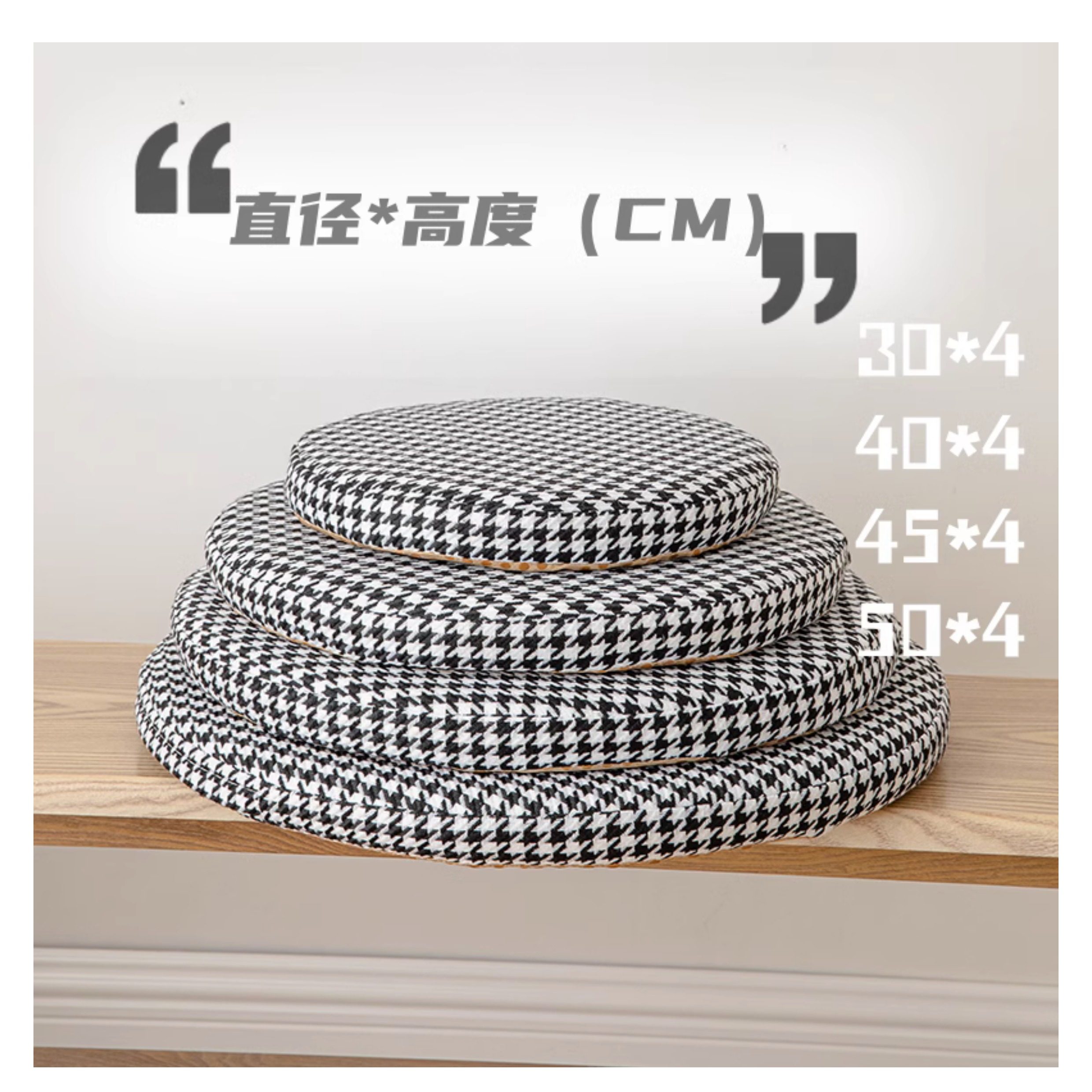 Houndstooth round Memory Foam Mat Futon Household Window Cushion Removable Non-Slip Tatami Imitation Cotton and Linen Mat