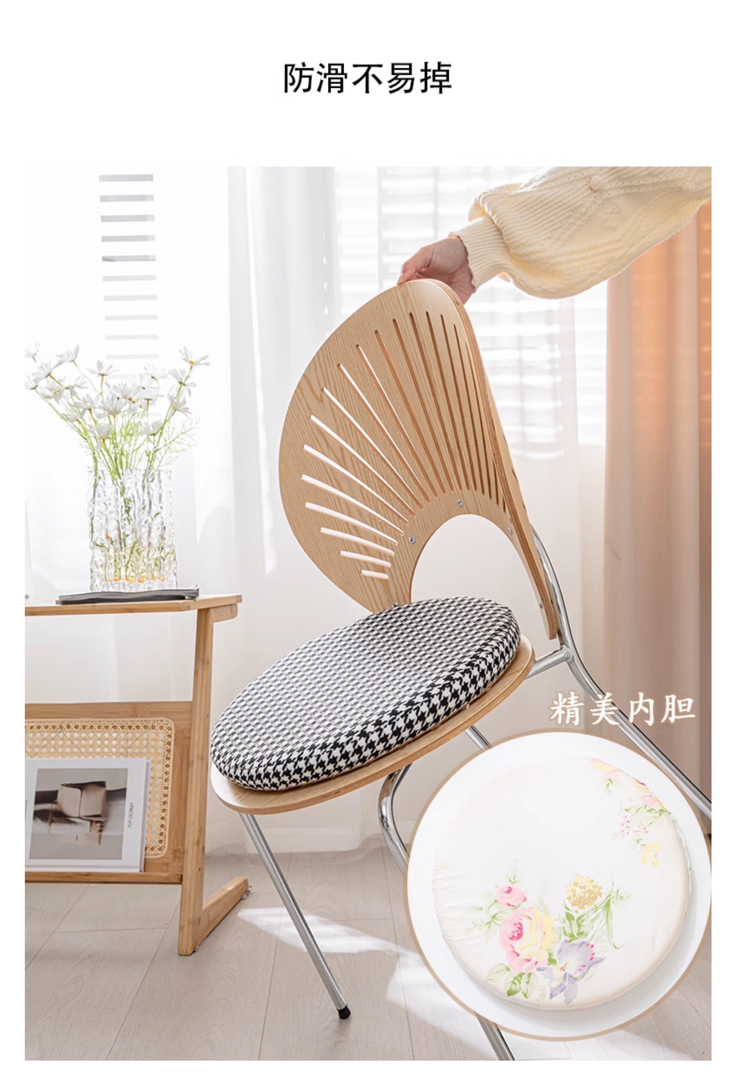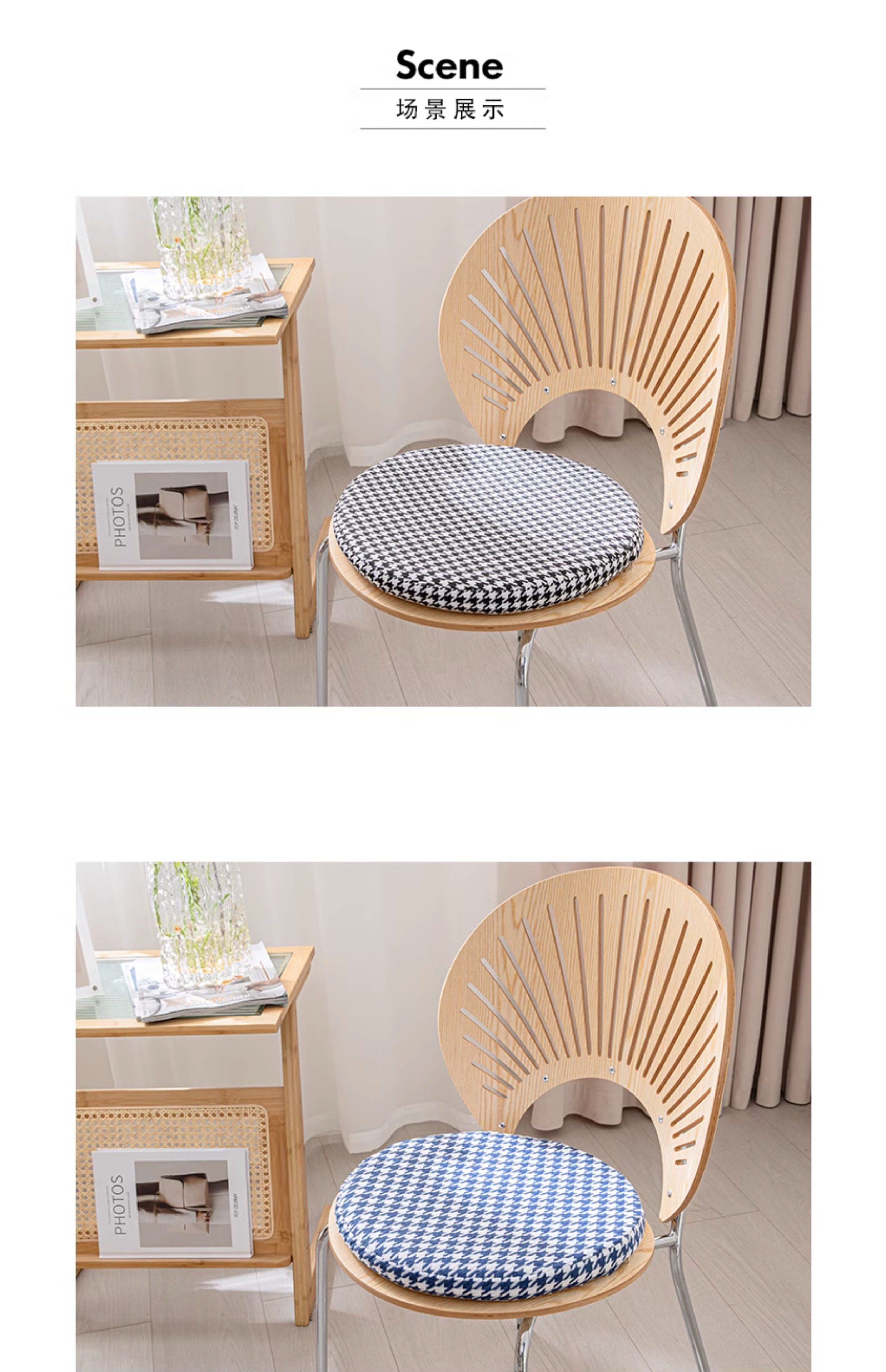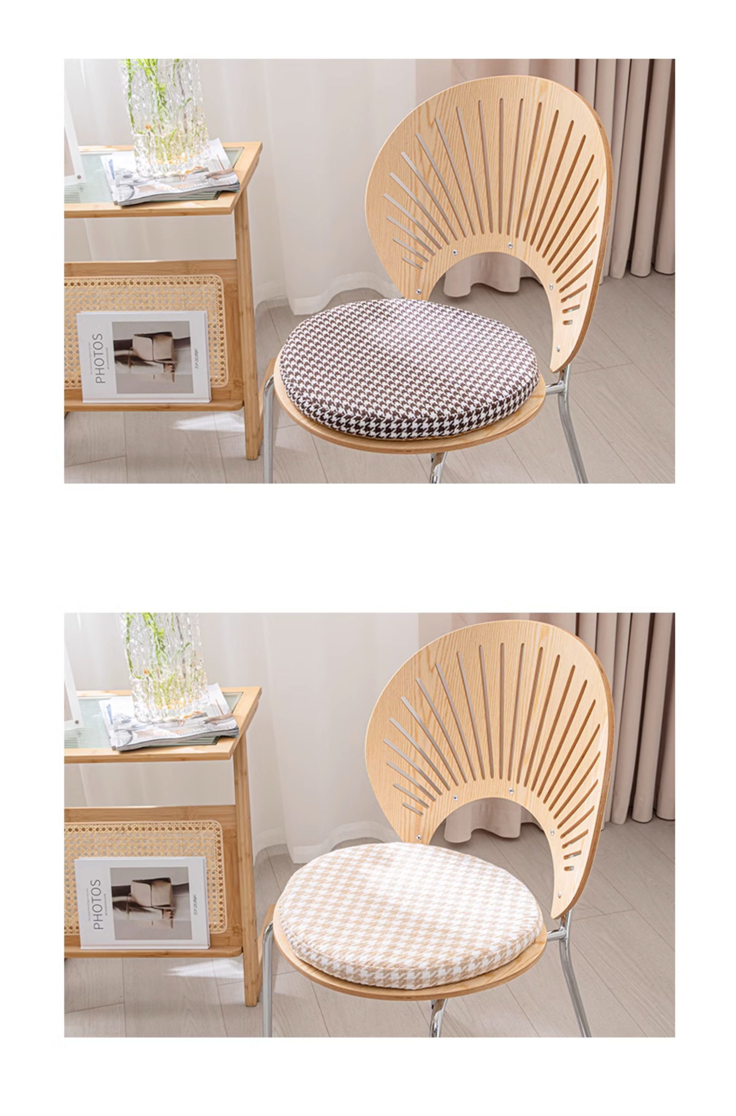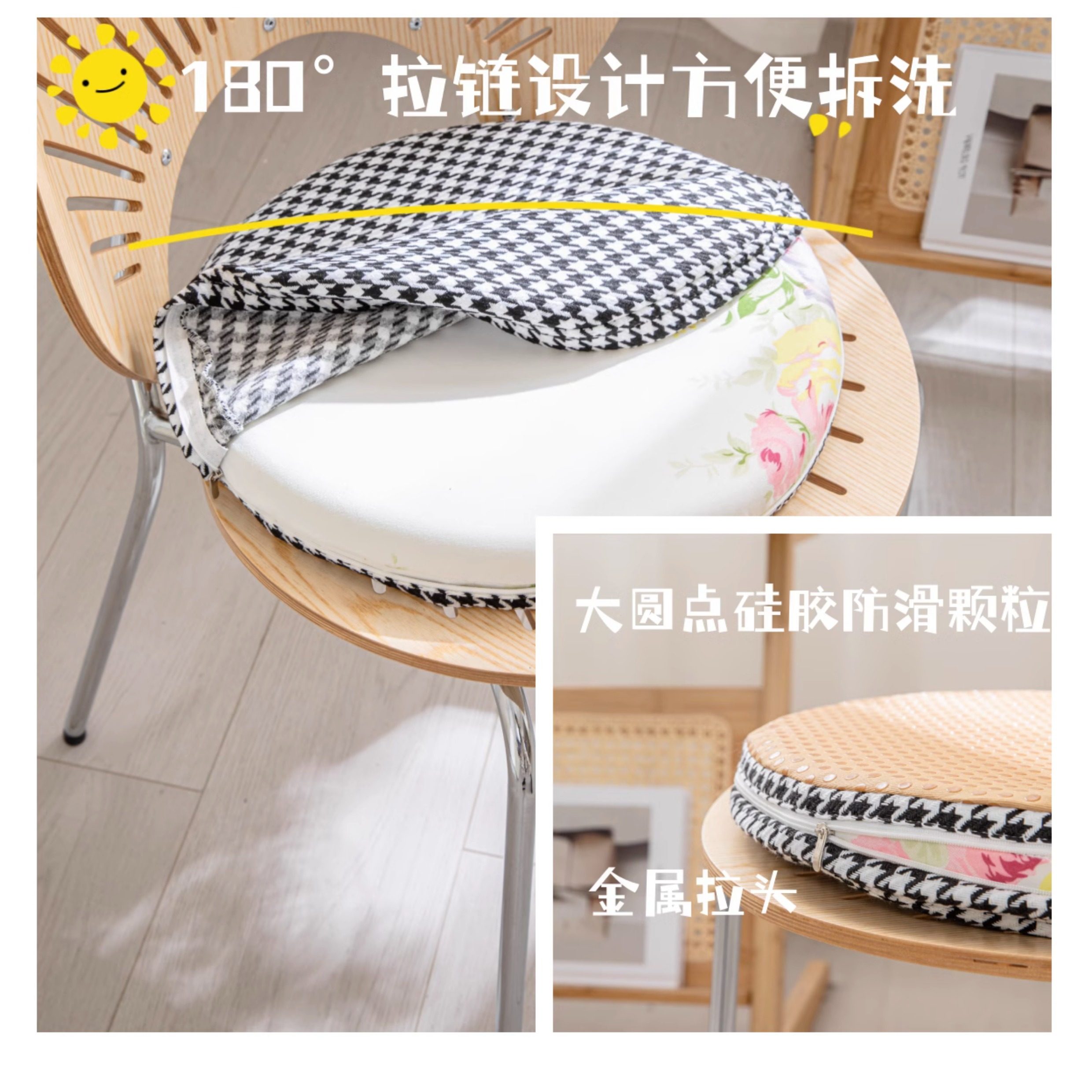 Houndstooth round Memory Foam Mat Futon Household Window Cushion Removable Non-Slip Tatami Imitation Cotton and Linen Mat