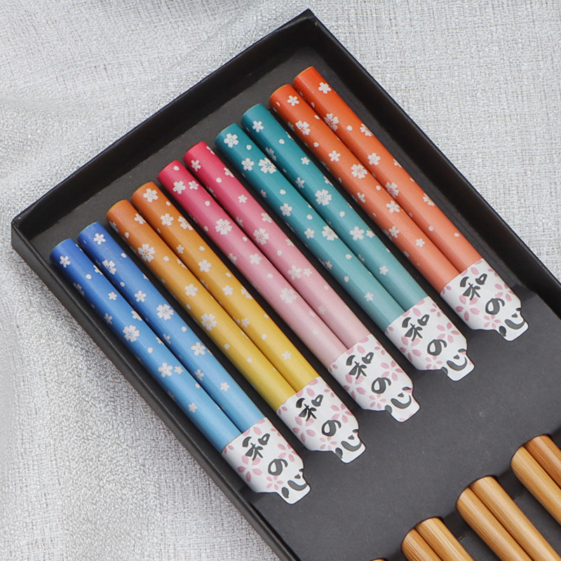 five colors blessing printed bamboo chopsticks (5 pairs)