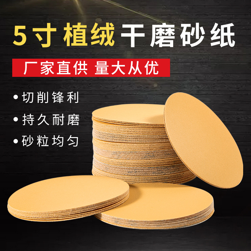 5-Inch Flocking Disc Sandpaper Dry Grinding SNAD Paper Disk Self-Adhesive Auto Putty Polished Back Velvet Gold Sandpaper Wholesale