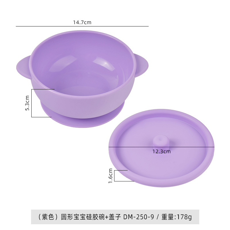 (purple) round baby silicone bowl * lid dm-250-9