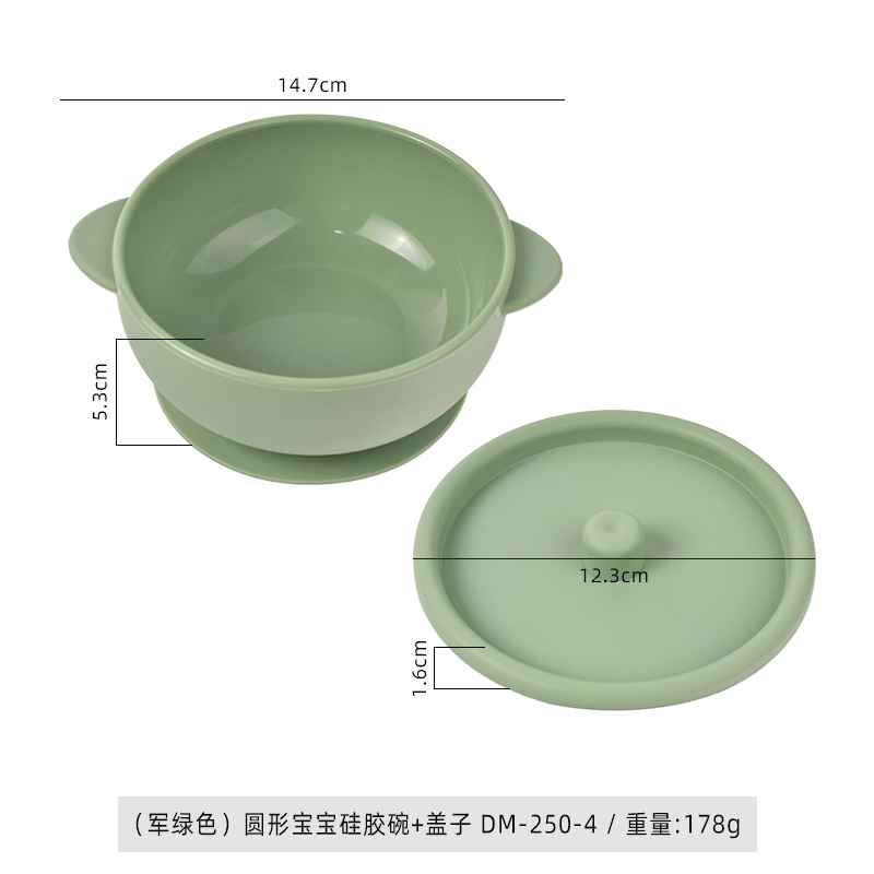 (army green) round baby silicone bowl * lid dm-250-4