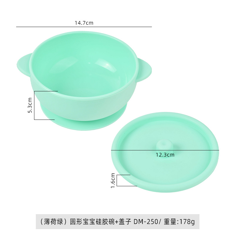 (mint green) round baby silicone bowl * lid dm-250
