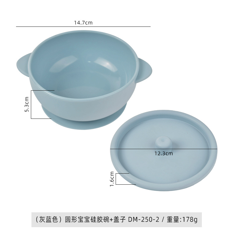 (gray blue) round baby silicone bowl * lid dm-250-2