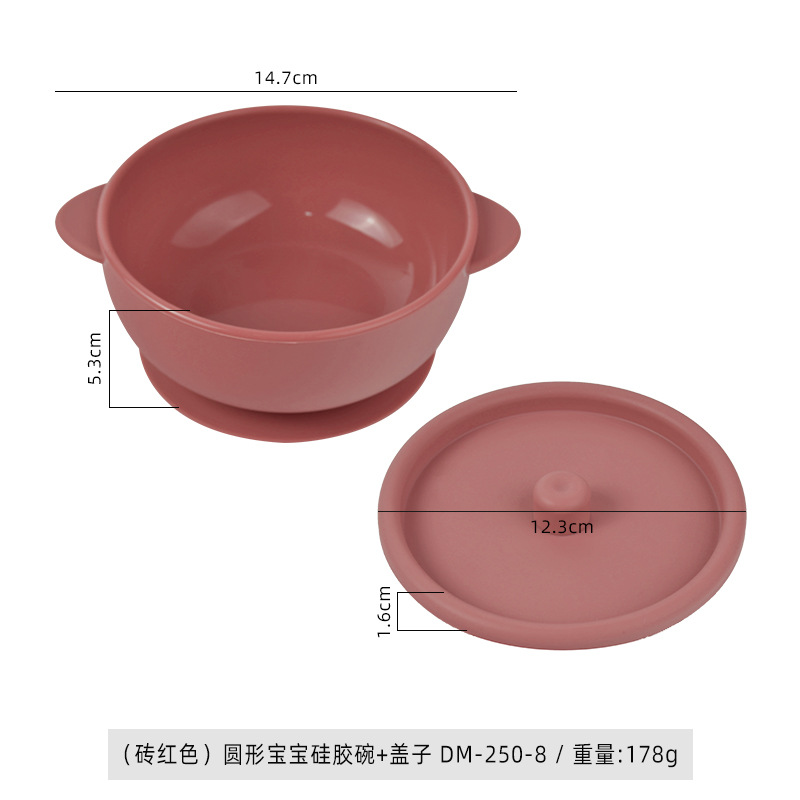 (brick red) round baby silicone bowl * lid dm-250-8