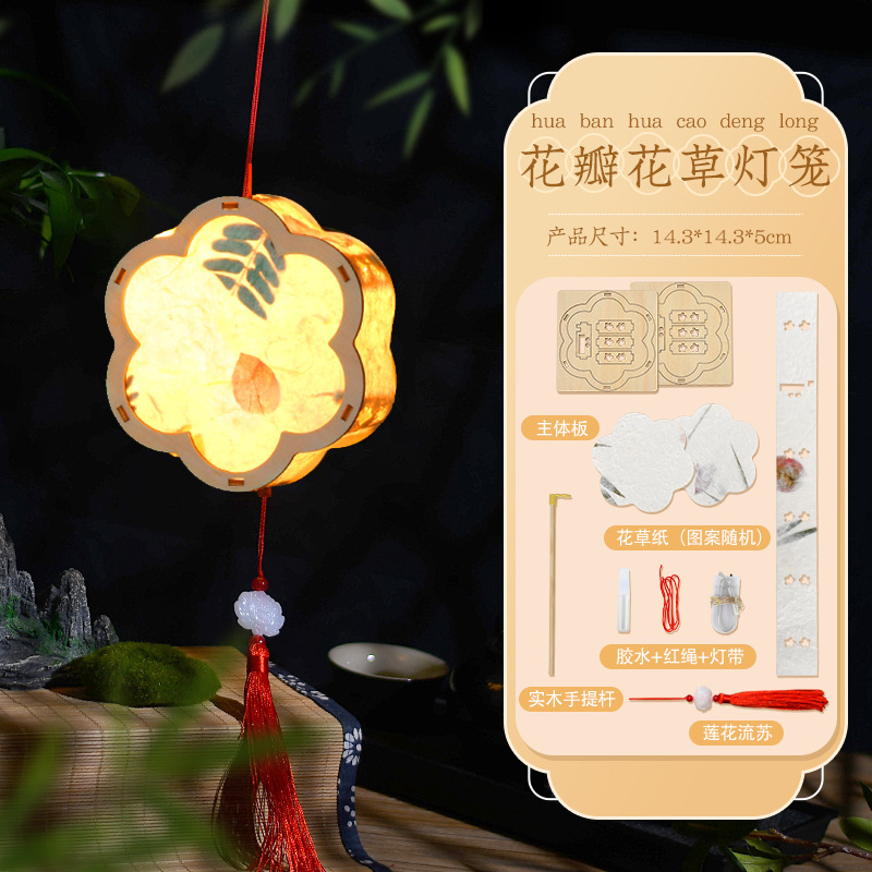 Petal Flowers and Plants Chinese Lantern (Free Lifting Rod + High-Grade Electronic Lamp + Tassel)