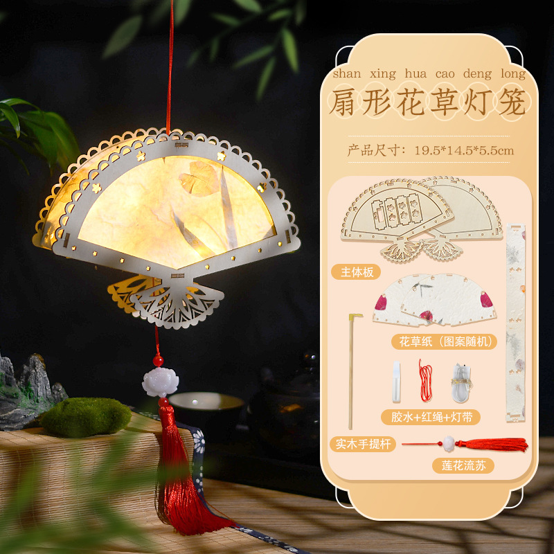 Fan-Shaped Wood Color Flowers and Plants Lantern (Free Lifting Rod + High-Grade Electronic Lamp + Tassel)