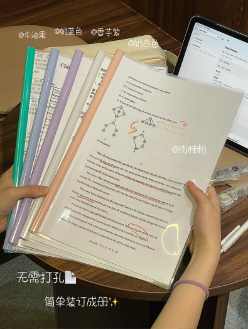 A4 Slide Grip Report Cover Morandi Drop-Shaped Thickened and Large-Capacity Office Supplies Resume Folder Folder Cute Storage Book