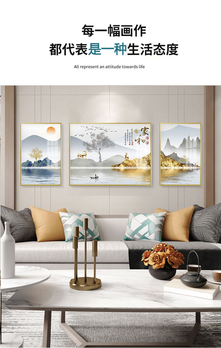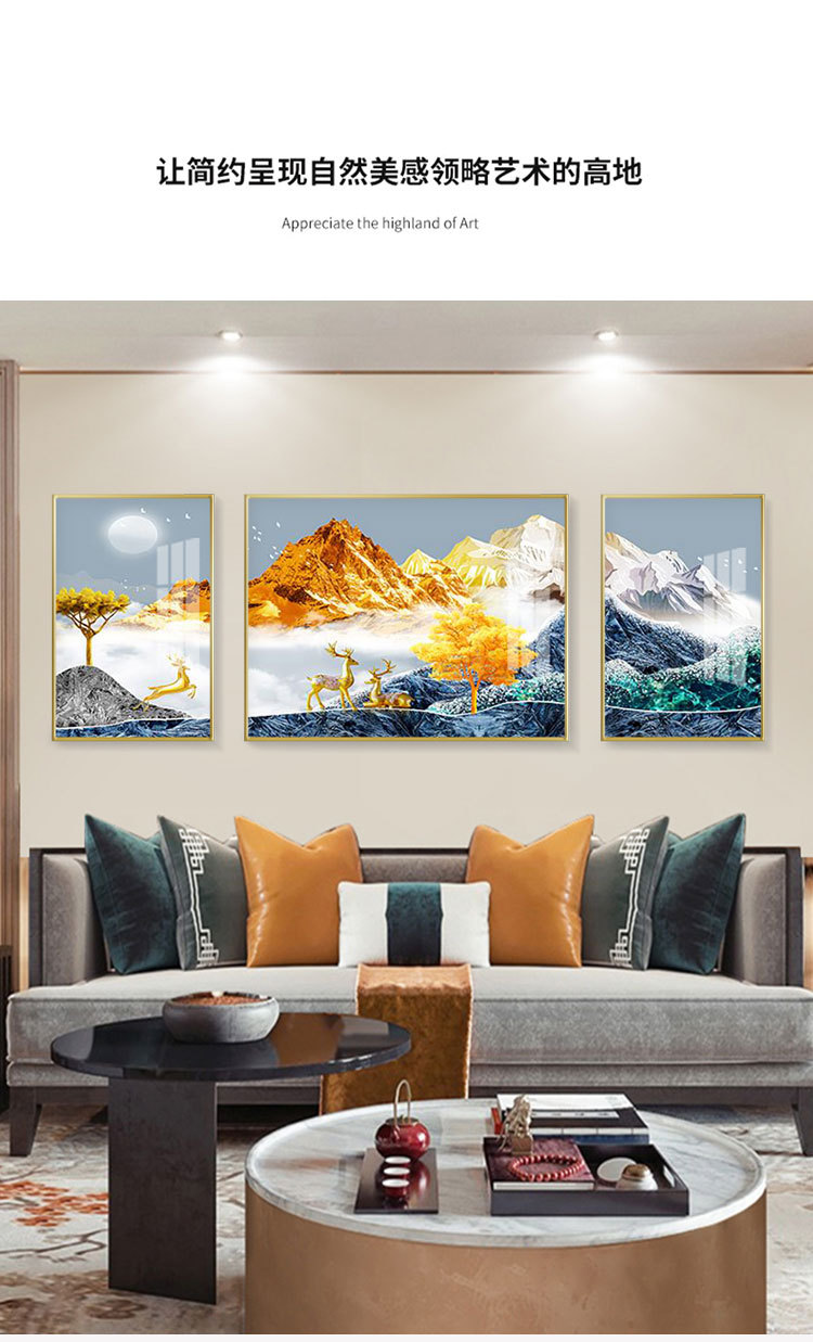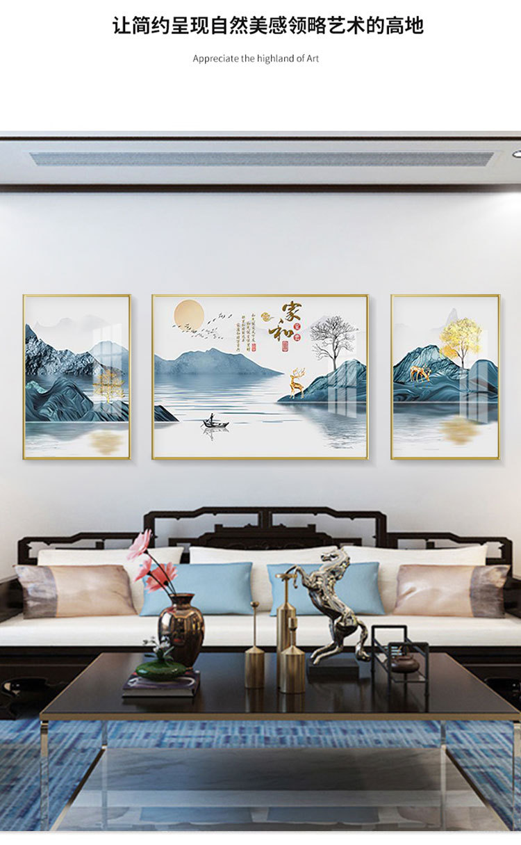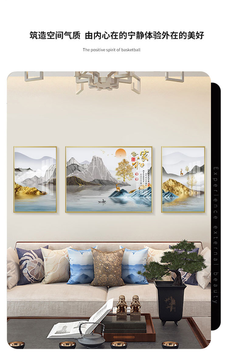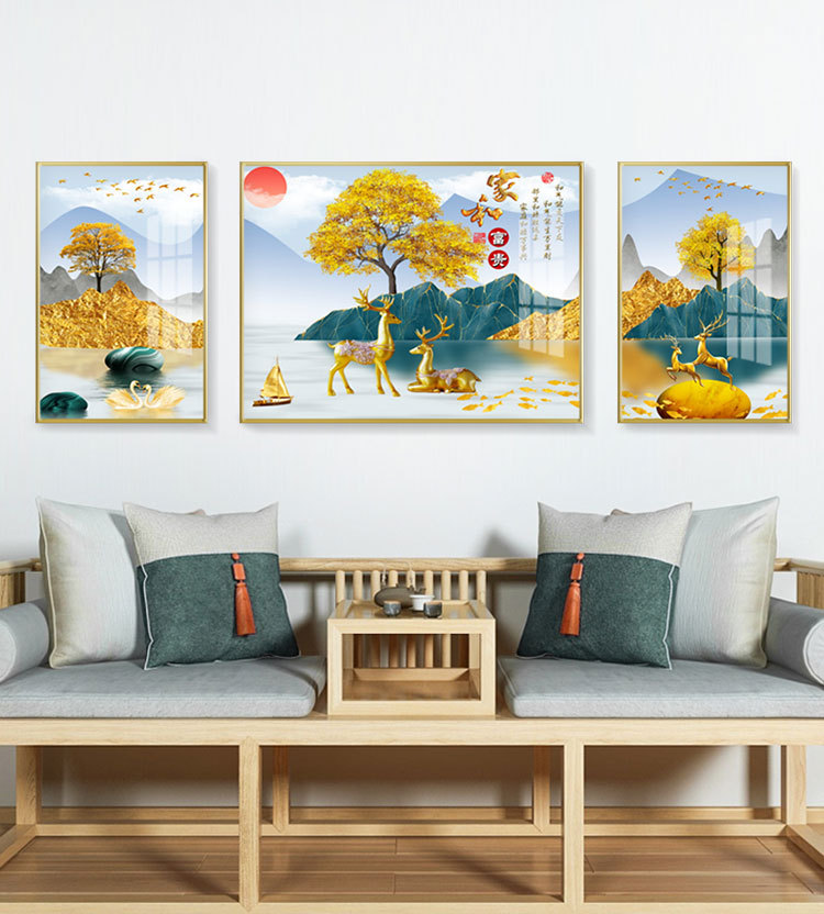 new chinese style living room decorative painting elk sofa background wall painting simple harmony and wealthy triple crystal porcelain diamond-embedded