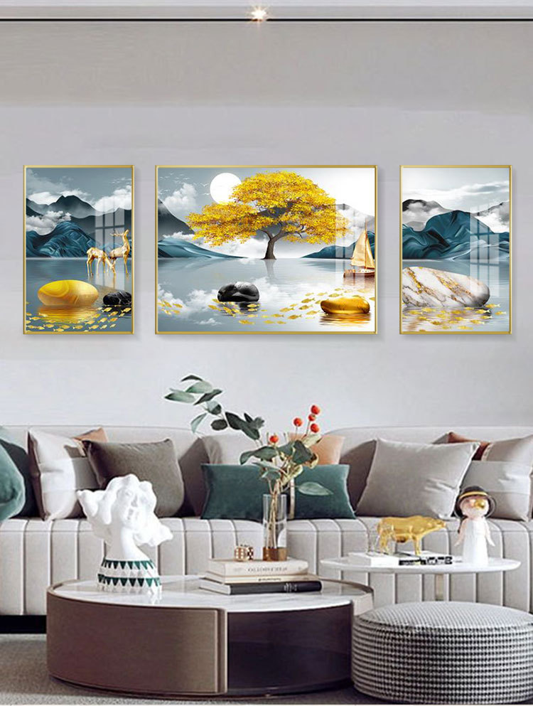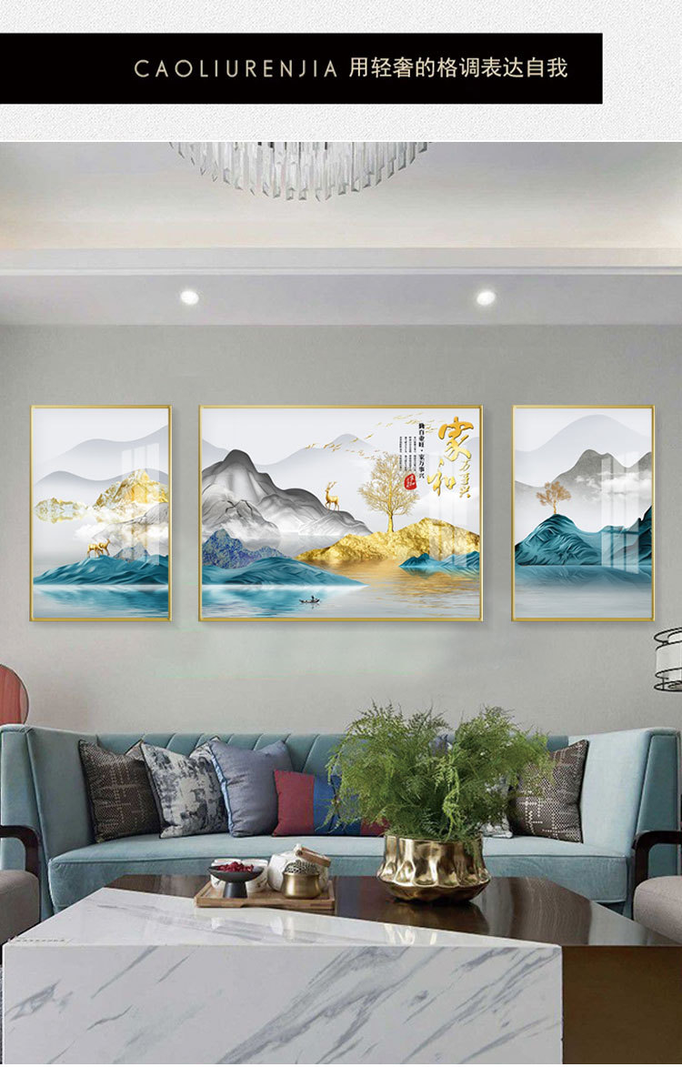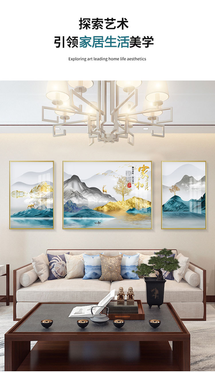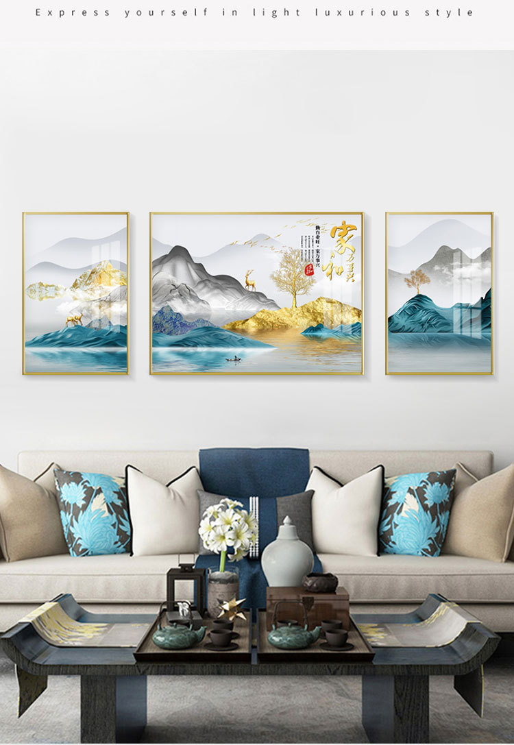 new chinese style living room decorative painting elk sofa background wall painting simple harmony and wealthy triple crystal porcelain diamond-embedded