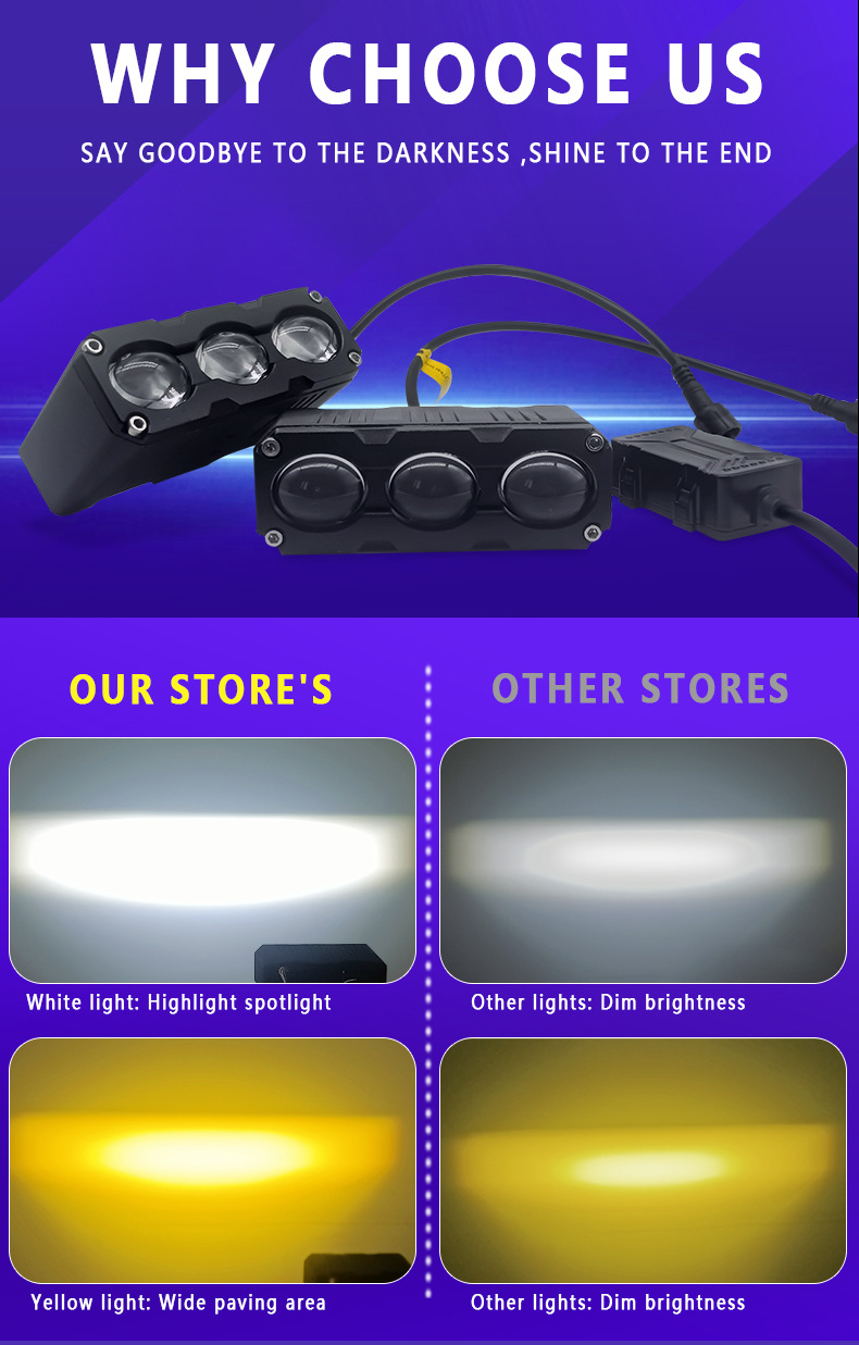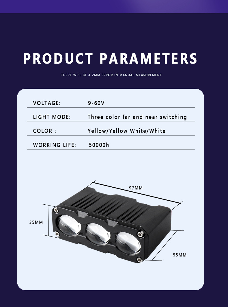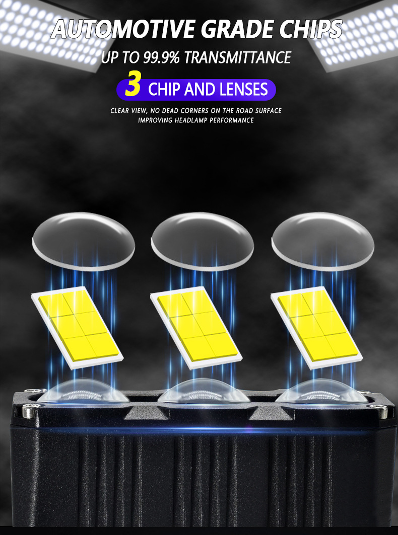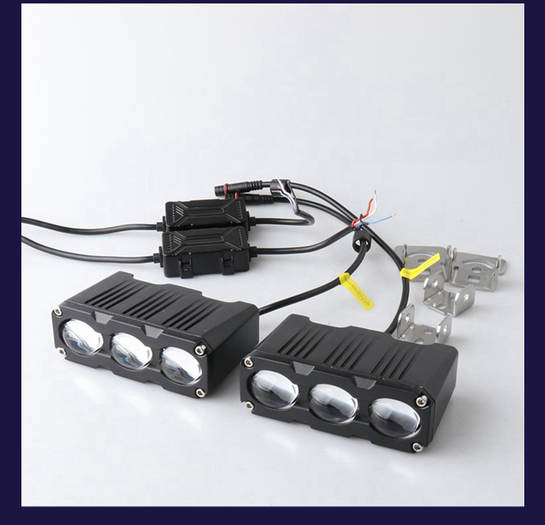 Ultra-Thin Three-Eye LED Spotlight High-Power Lens Car Grille Light Motorcycle LED Spotlight Mid-Net off-Road Vehicle Lamp
