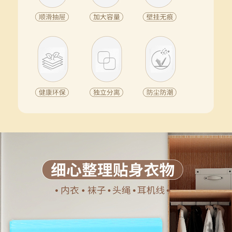 [beige] drawer 6-compartment, adjustable