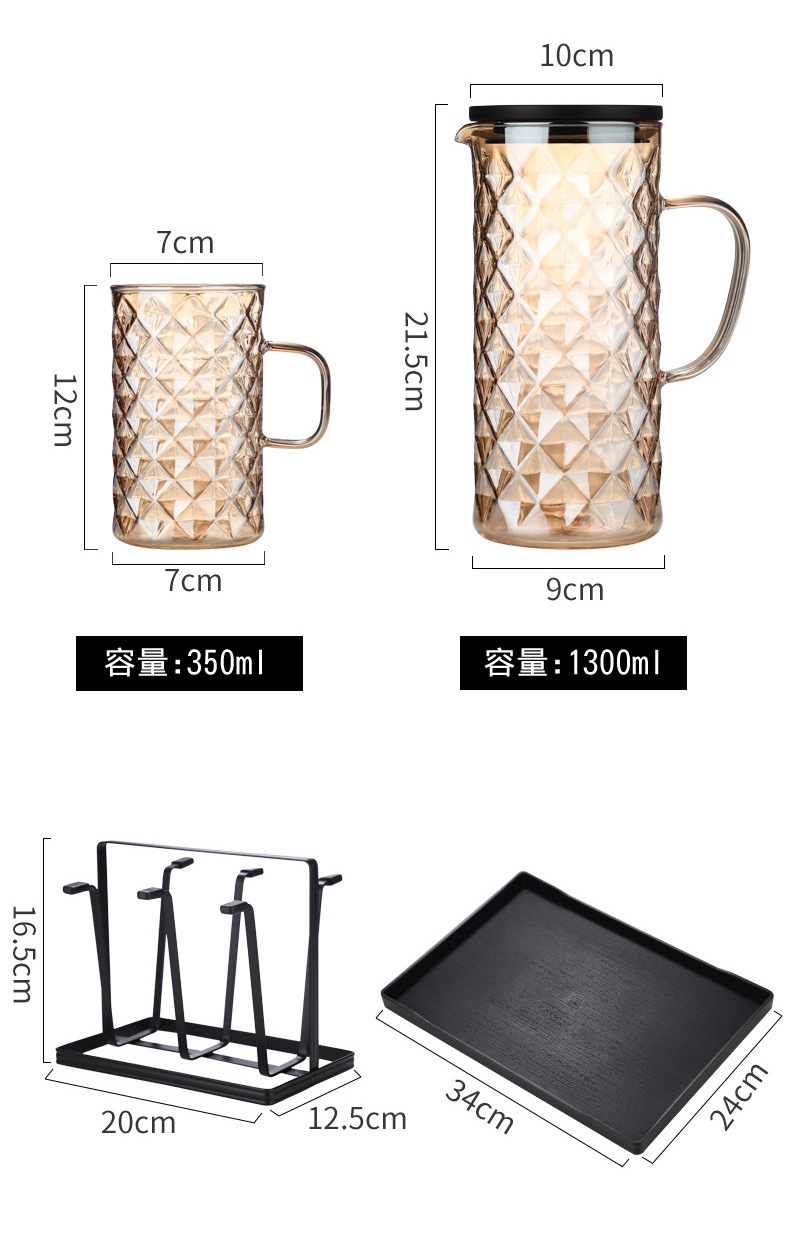 glass cup set household glass water cup kettle set glass water cup holder living room tea cup water set