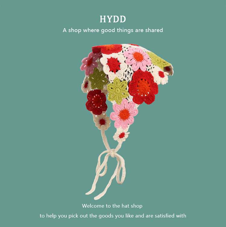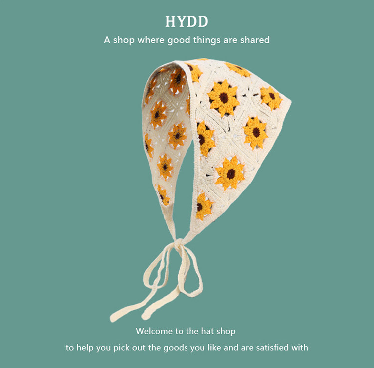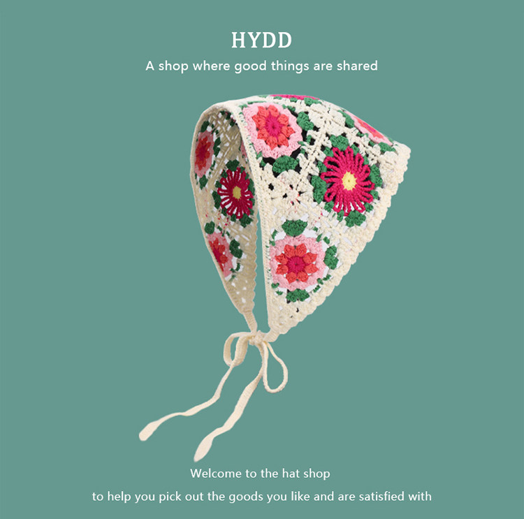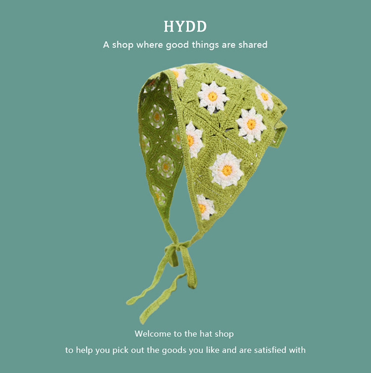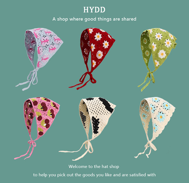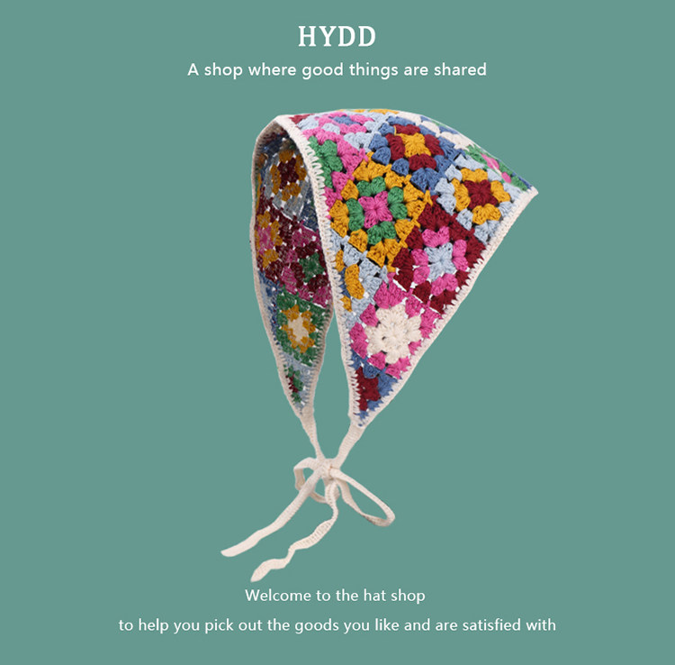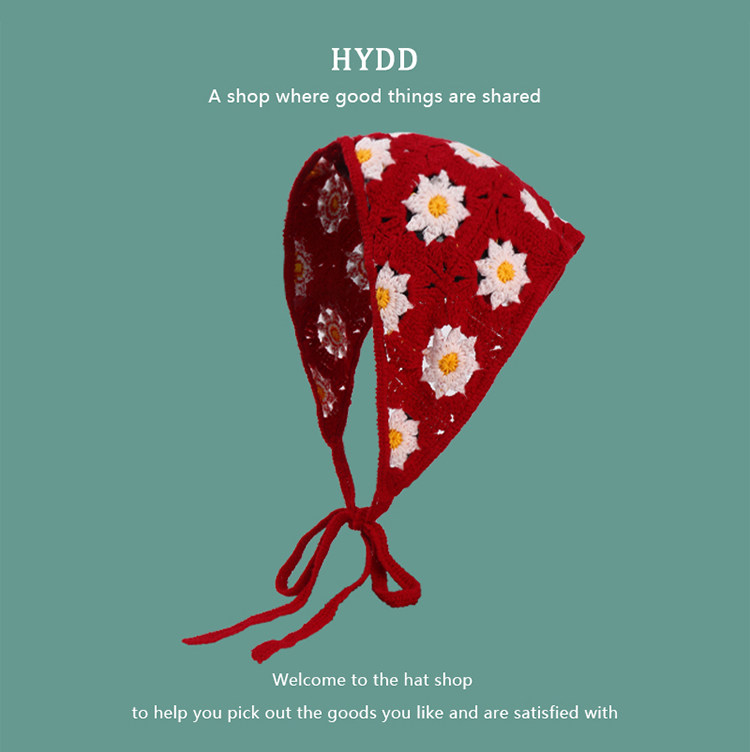 French Retro Knitted Handmade Hot Girl Triangular Binder Travel Sweet Cute Crocheted Artistic Style Headscarf Female Hair Band Tide