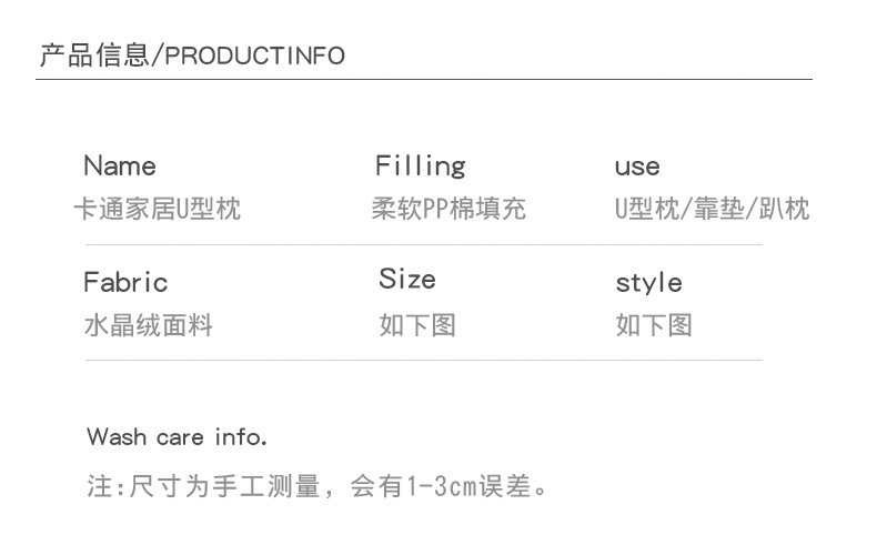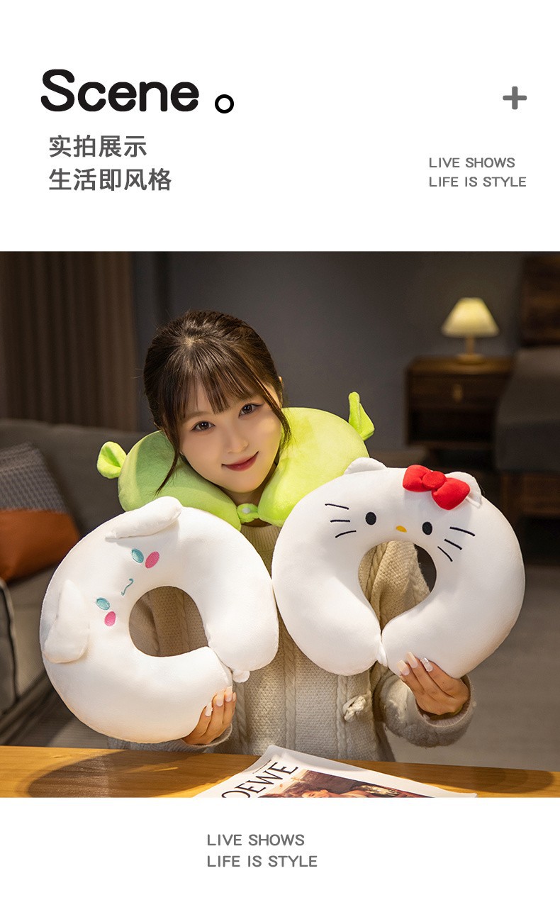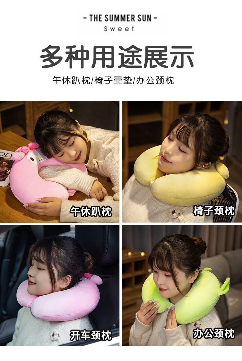 Cute Creative U-Shape Neck Pillow Car Travel Neck Pillow Office Nap Cervical Pillow Cartoon Fluffy U-Shaped Pillow
