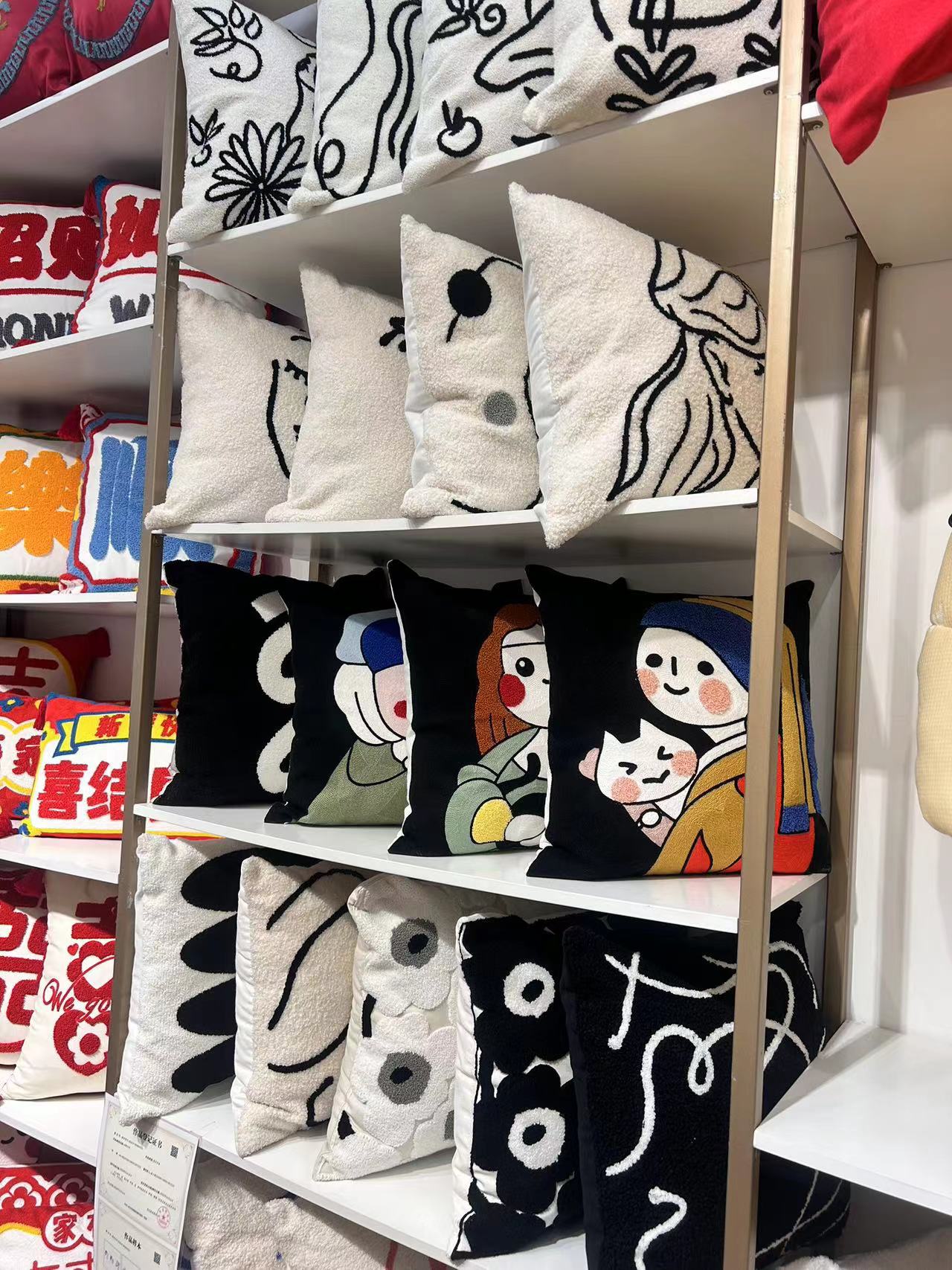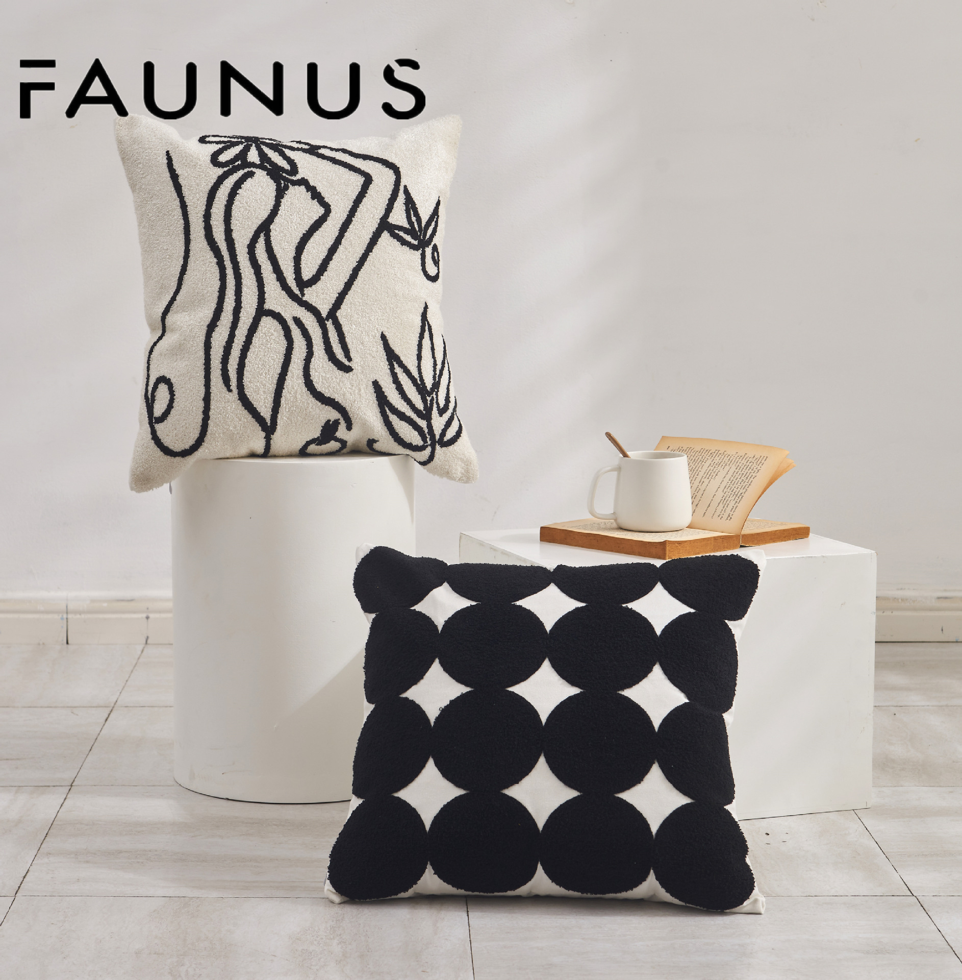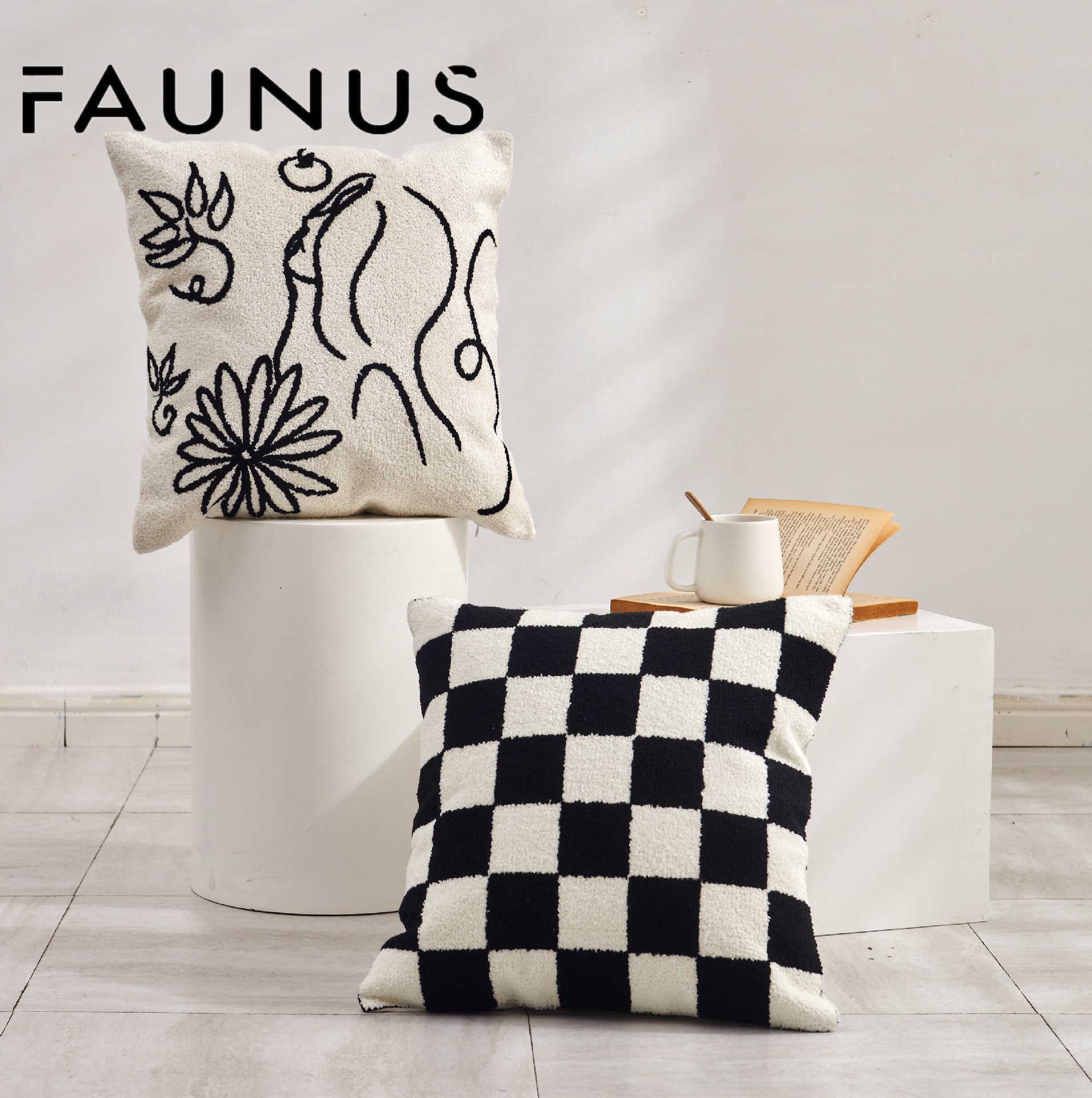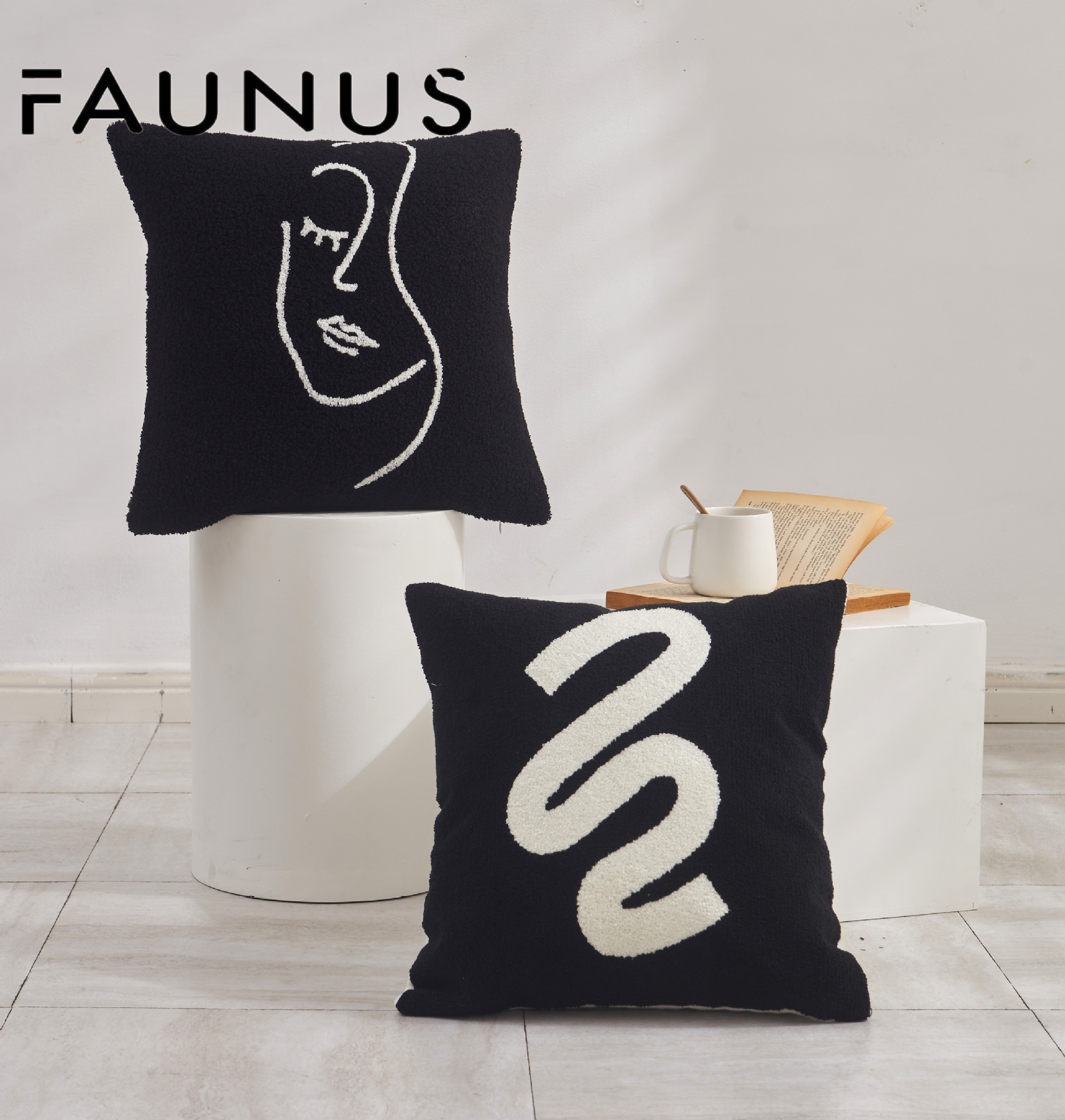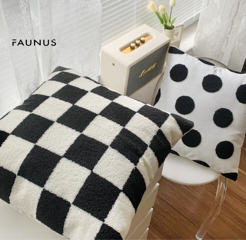 INS Style Cream Style Modern Simple Black and White Couch Pillow Light Luxury Plush Living Room and Bedside Decorative Embroidered Pillow