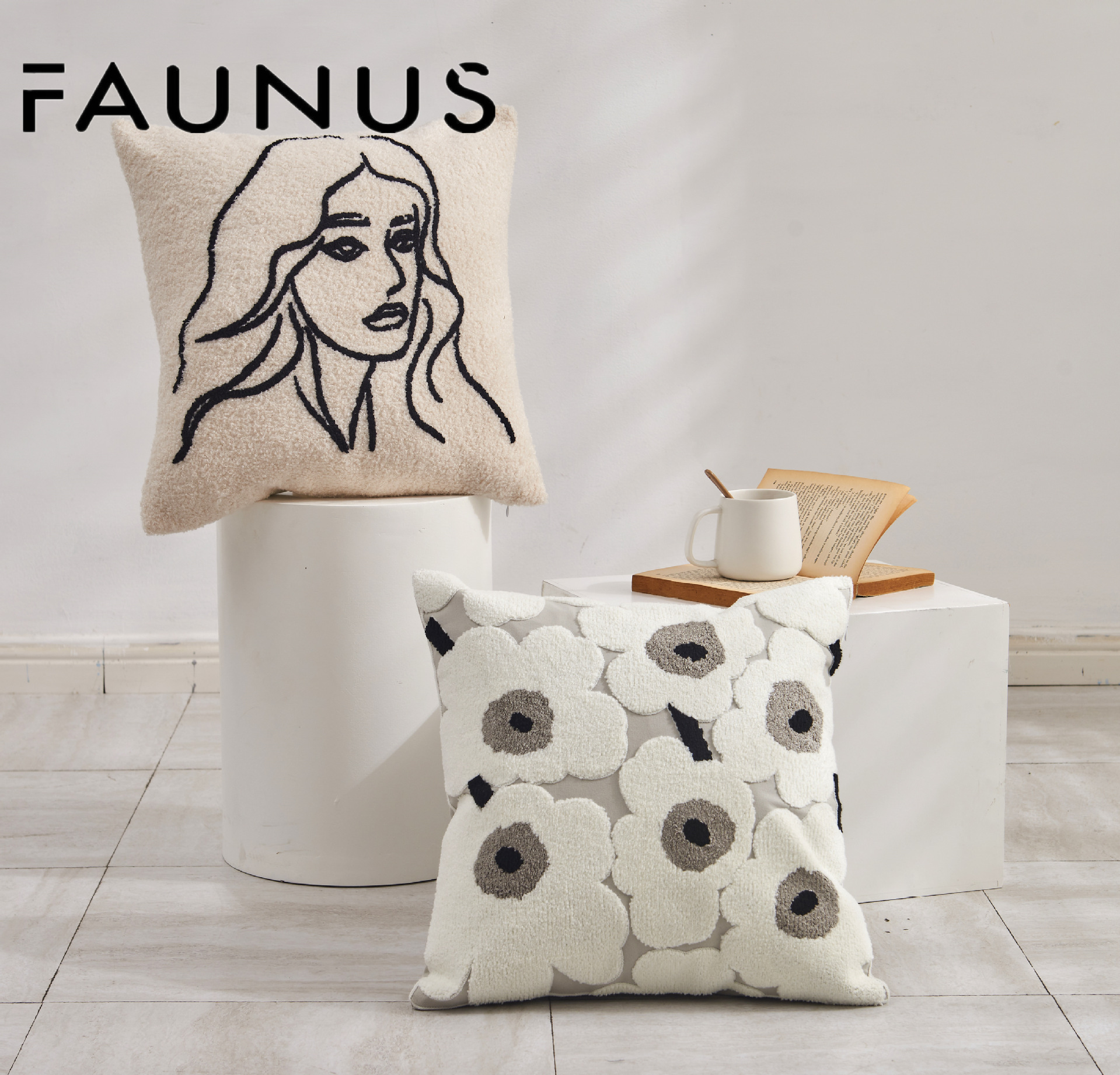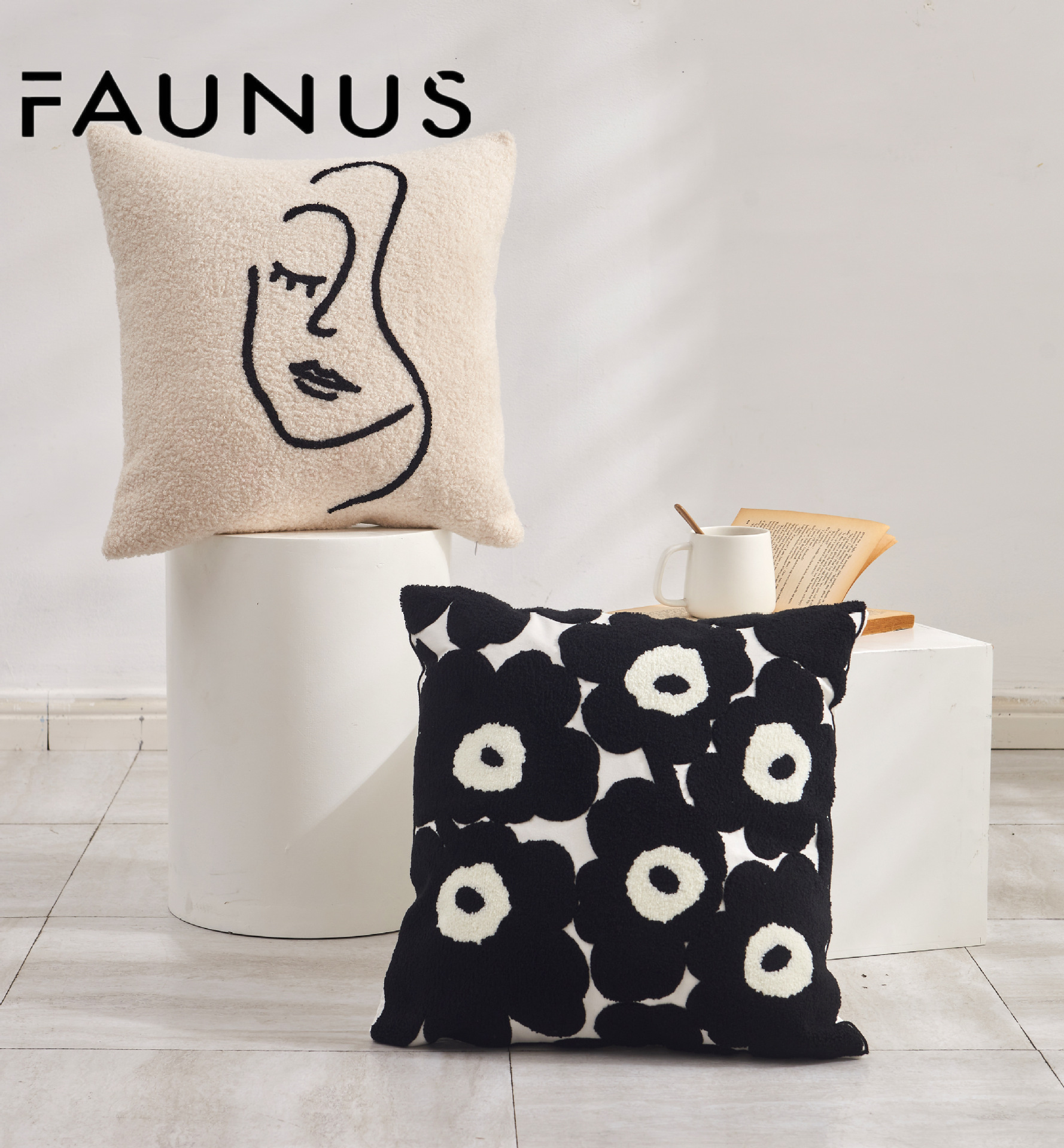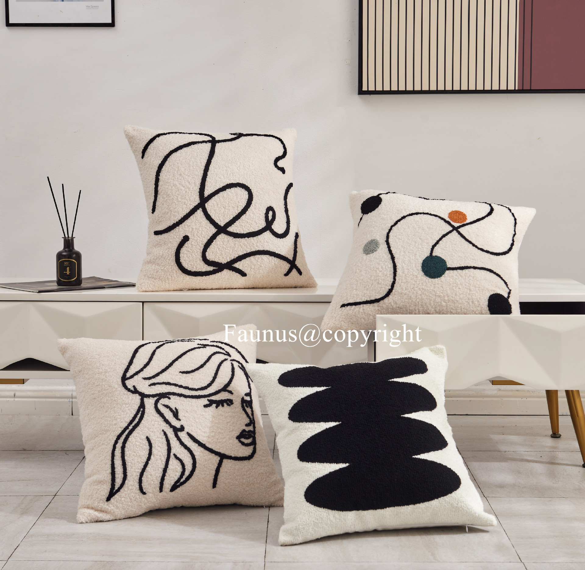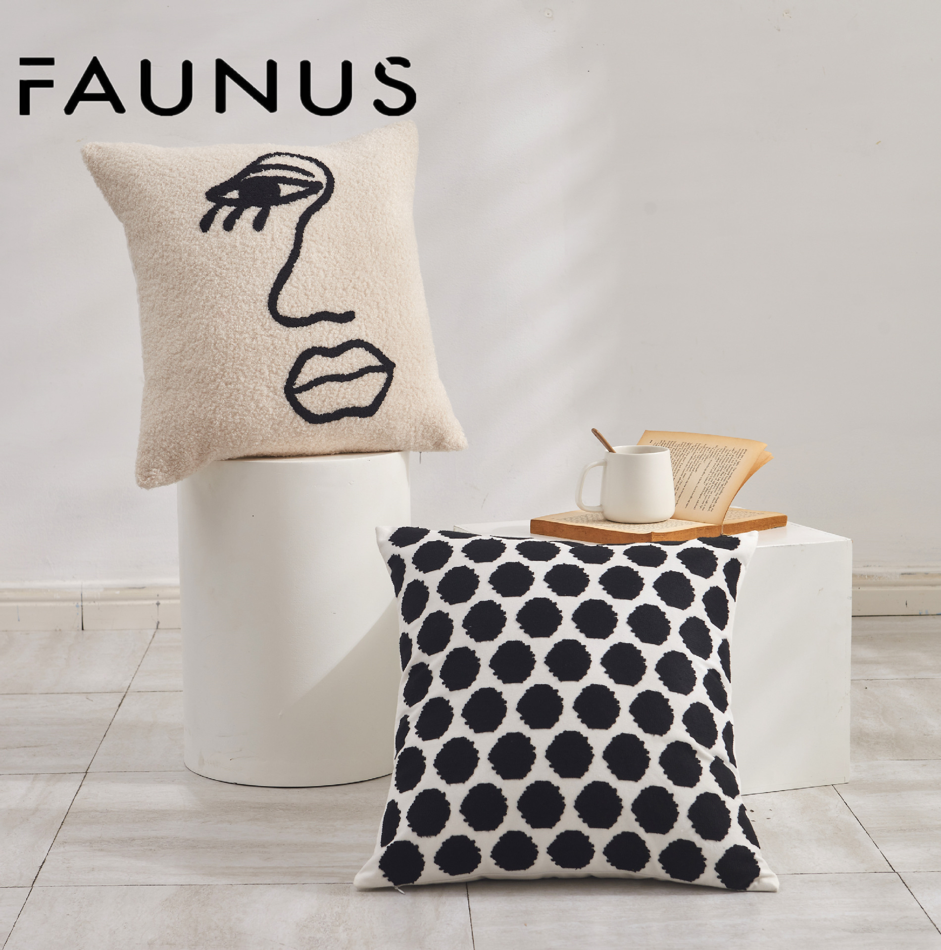 INS Style Cream Style Modern Simple Black and White Couch Pillow Light Luxury Plush Living Room and Bedside Decorative Embroidered Pillow