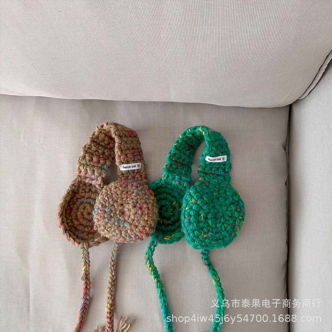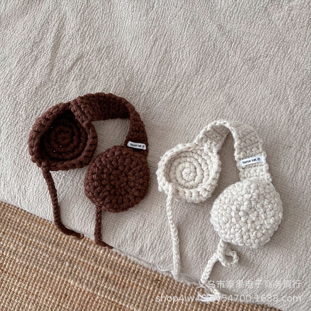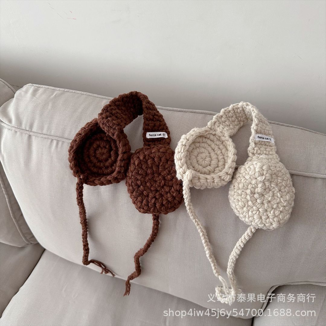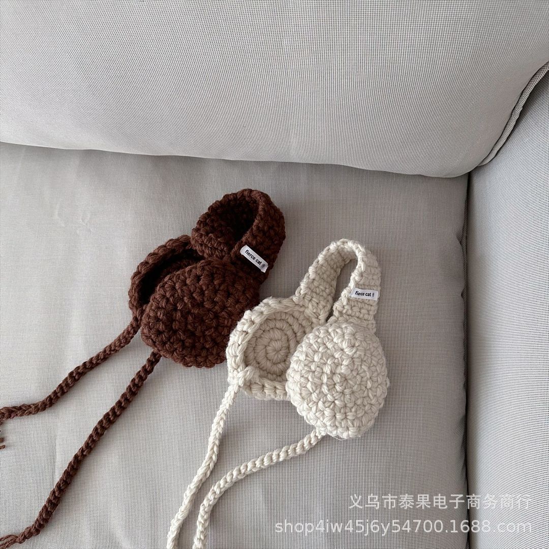 Korean Style Ins Style Children's New Handmade Crocheted Winter Earflaps Lace-up Earmuffs Boys and Girls Western Style All-Matching Hair Band