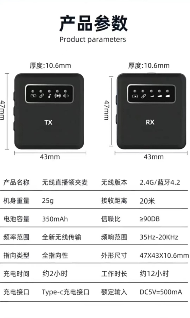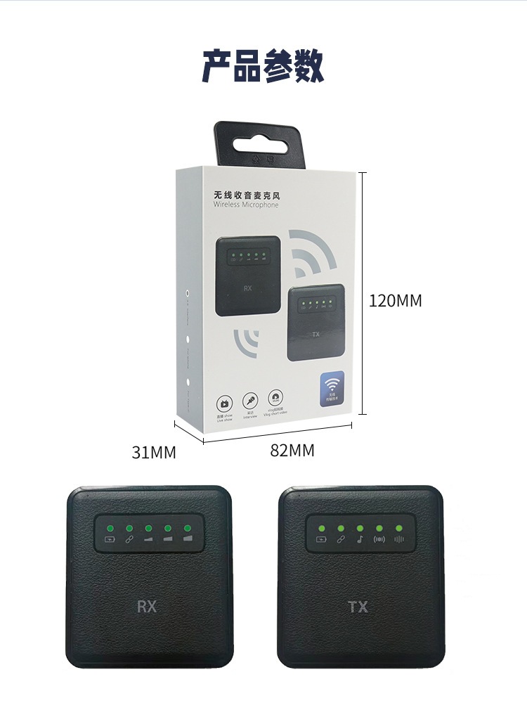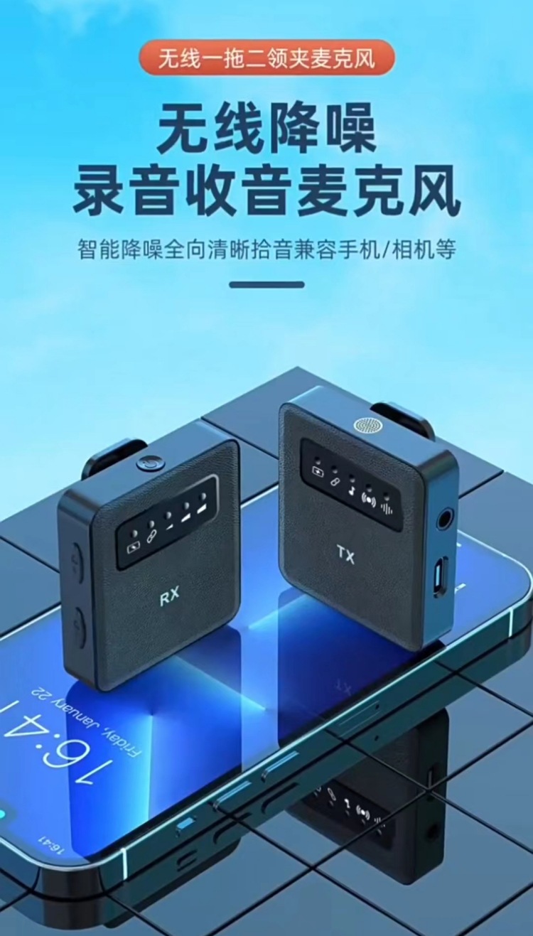 small square box wireless collar clip microphone one-to-two live broadcast noise reduction microphone one to one interview radio