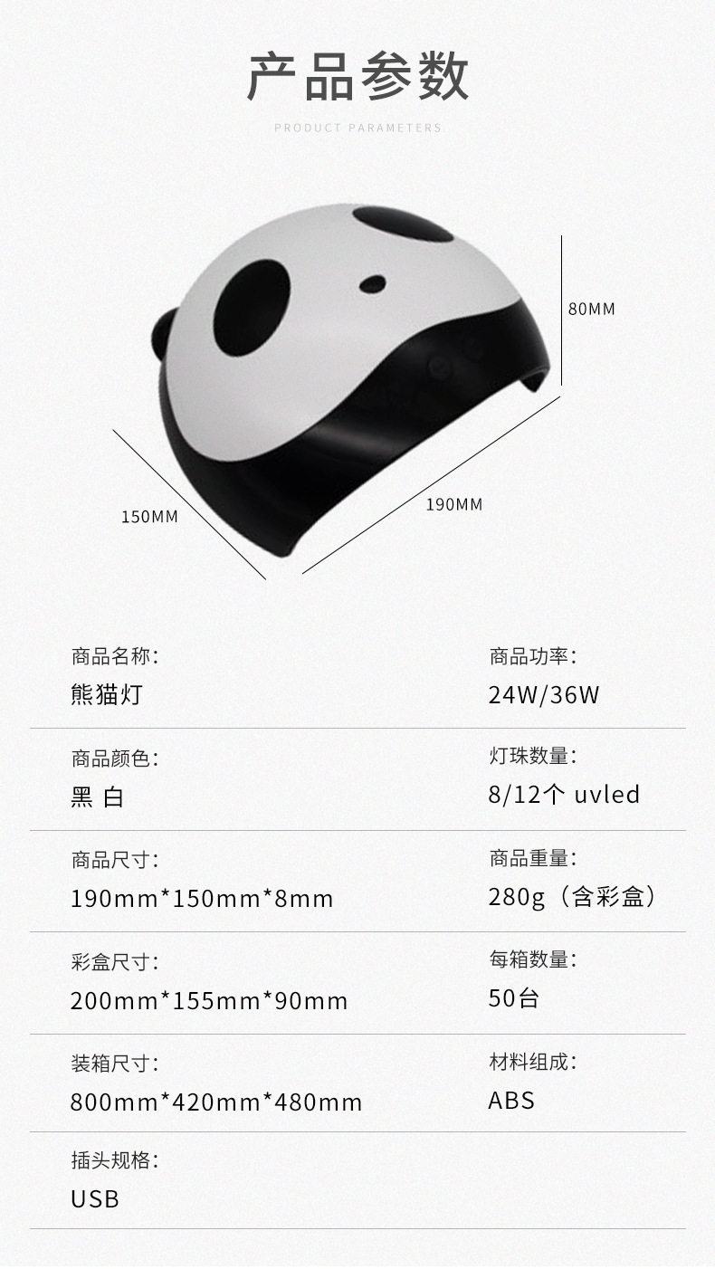 Cross-Border Panda Hot Lamp 36W Dual Light Source Phototherapy Machine Creative Nail Heating Lamp Uvled Manicure Curing