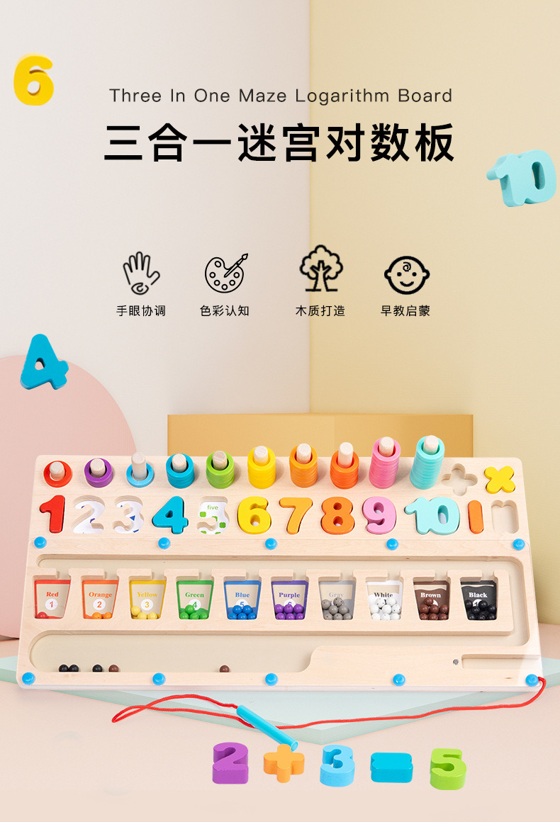 Cross-Border Children's Magnetic Beads Multi-Functional Numbers Board Cognitive Early Childhood Education Wooden Puzzle Toy