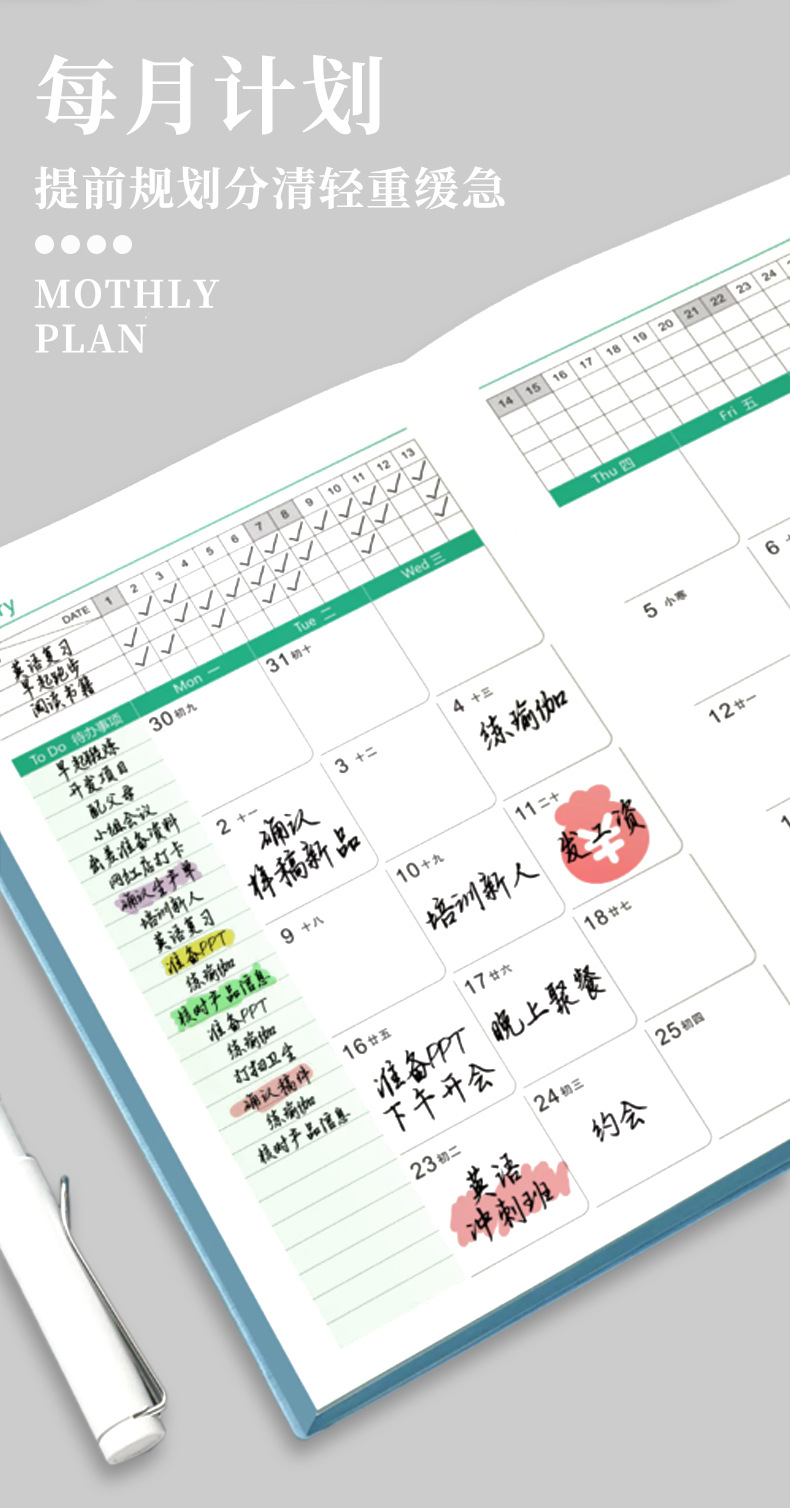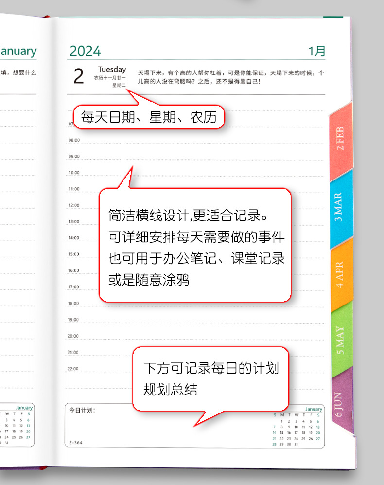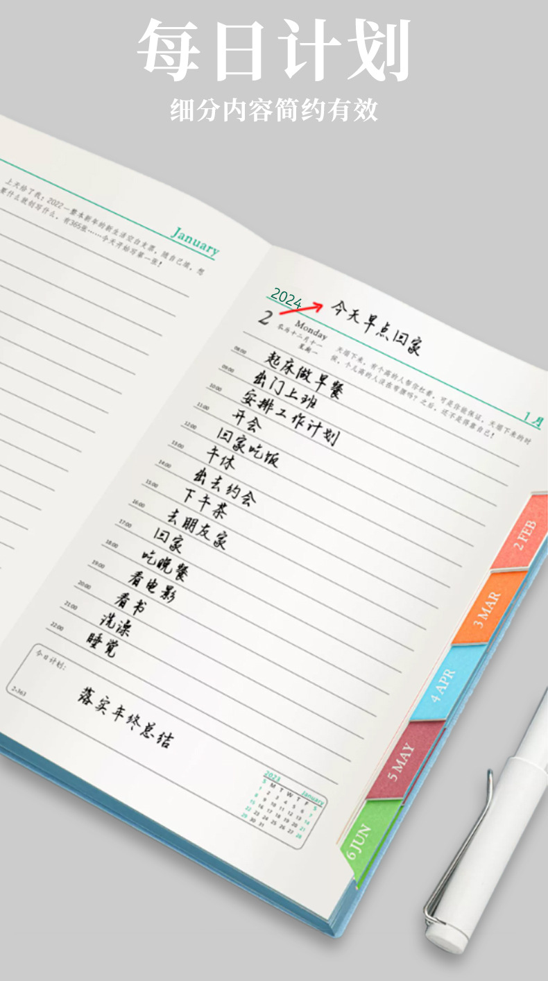 2024 Schedule Book Self-Discipline Clock-in Time Management Daily Planner Efficiency Manual Calendar Journal Notebook
