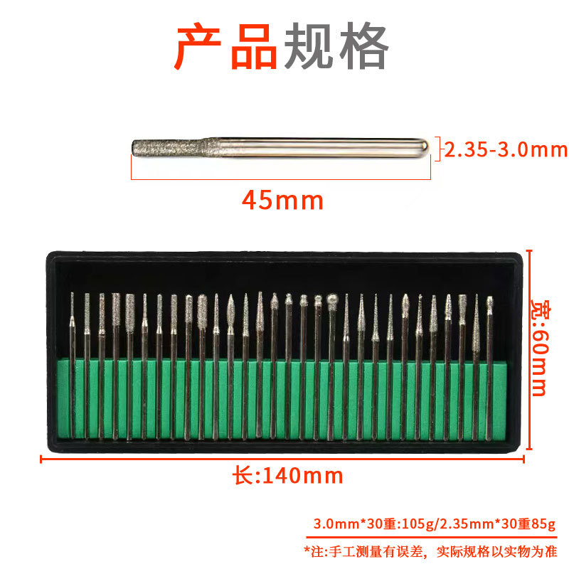 Diamond Grinding Needle Alloy Grinding Head Jade Frotton 2.35 X30 Set 3x30 Set Carving Tools Factory Supply