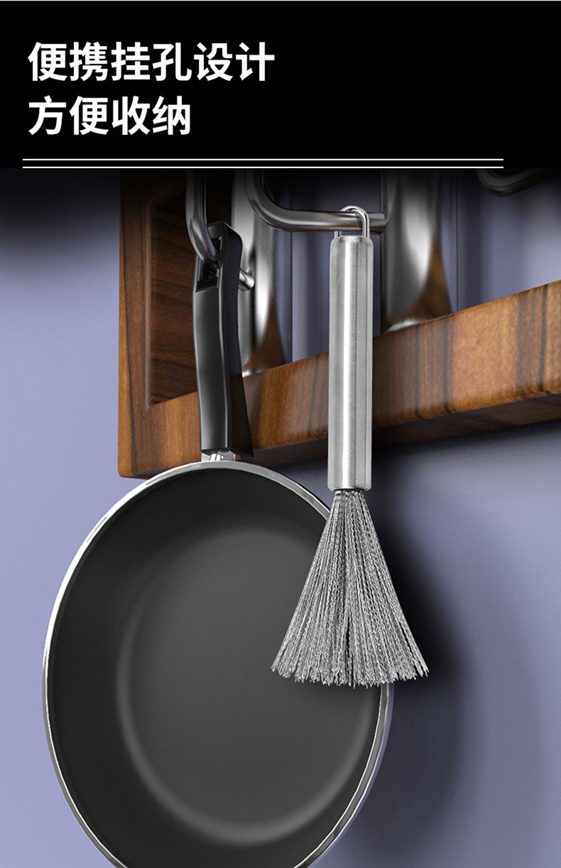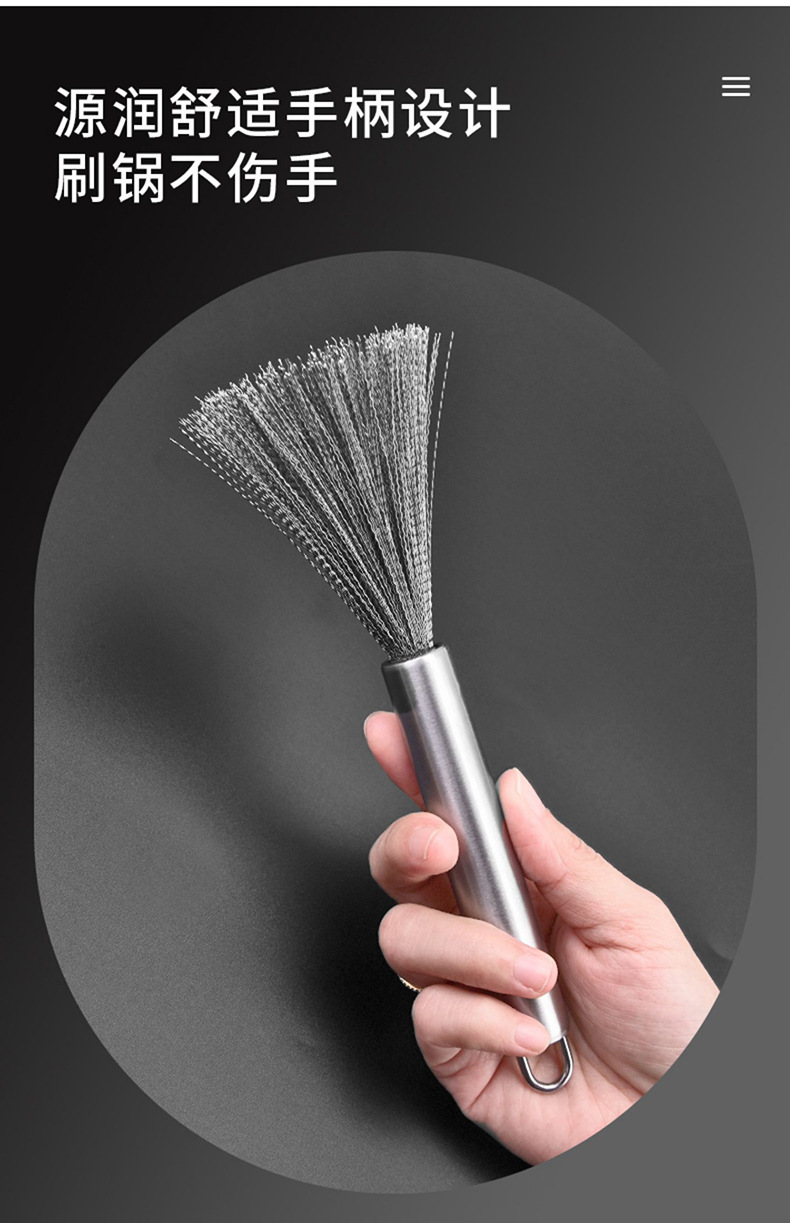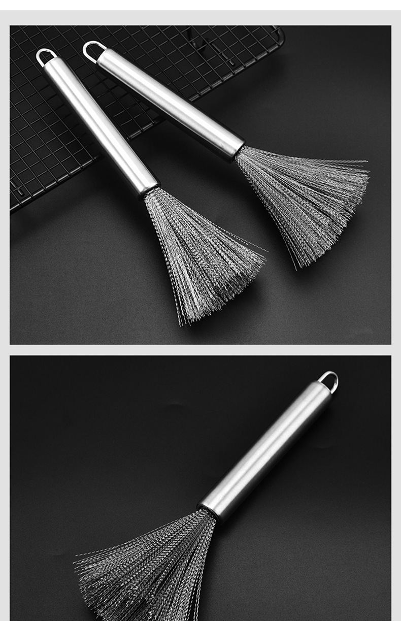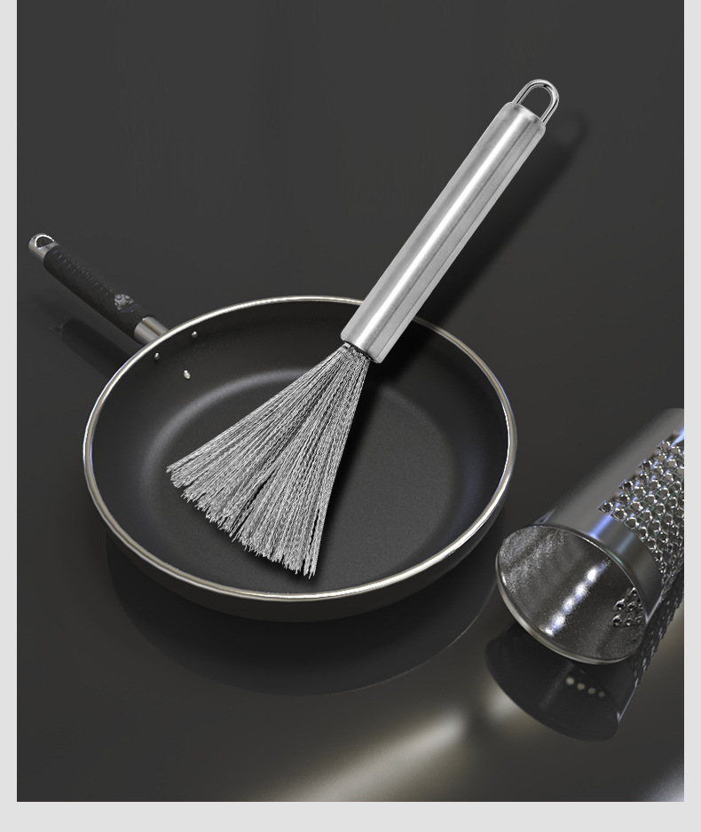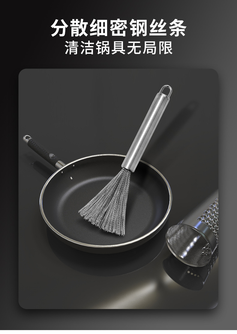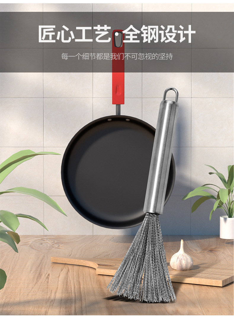 201 Stainless Steel Wok Brush Long Handle Brush Pot Artifact Washing Wok Brush Brush Pot Steel Wire Cleaning Brush Wok Brush