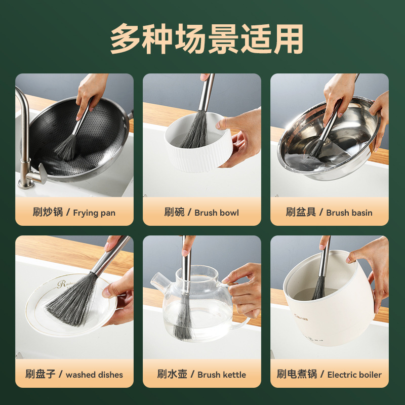 304 Stainless Steel Wok Brush Advanced Stainless Steel Brush Long Handle Kitchen Essential Oil-Free Stainless Steel Wire Strong Decontamination