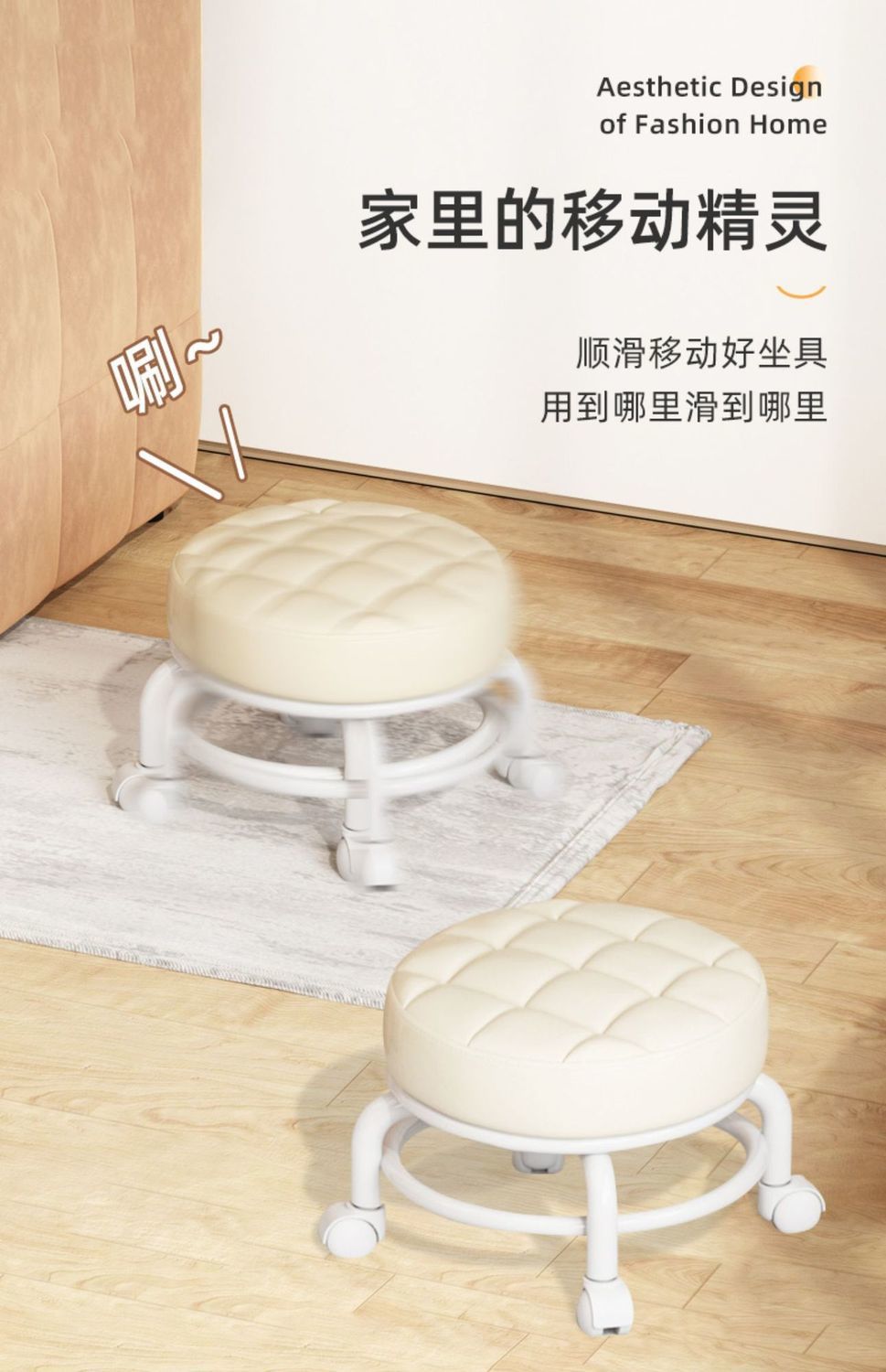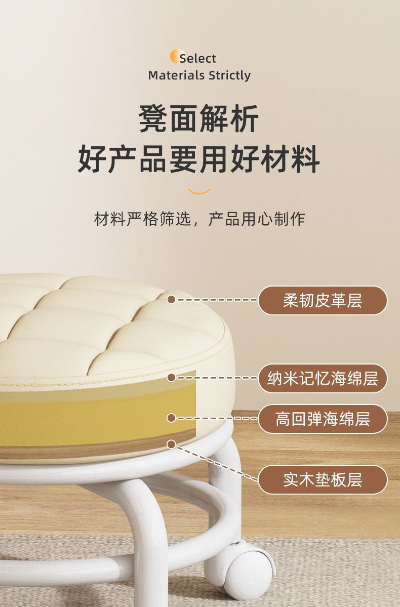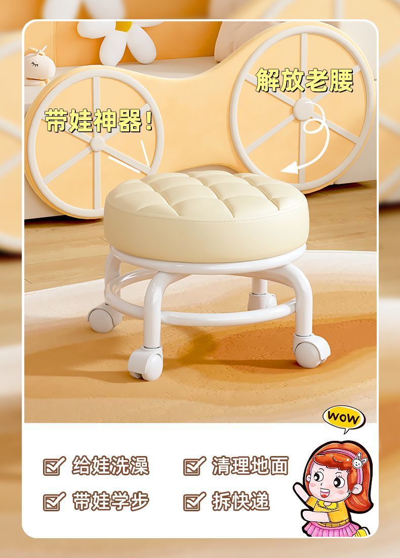 Universal Wheel Small Stool Pulley Low Stool Rotatable Mobile Chair Household Small Bench Rental Room round Stool