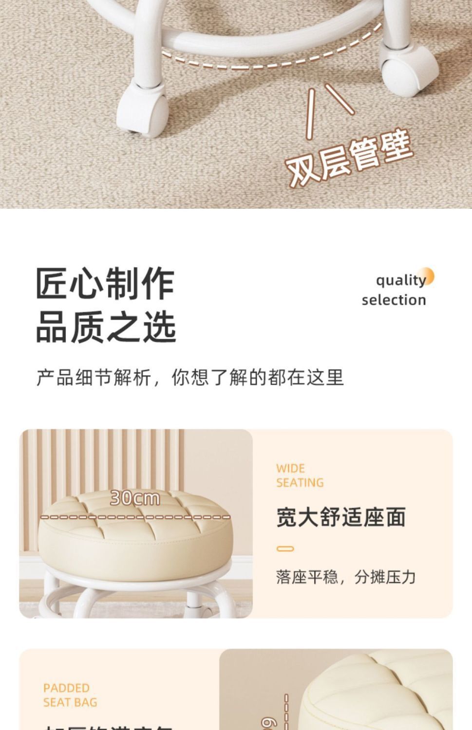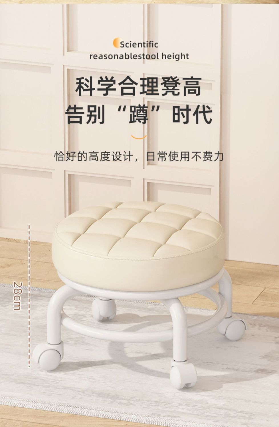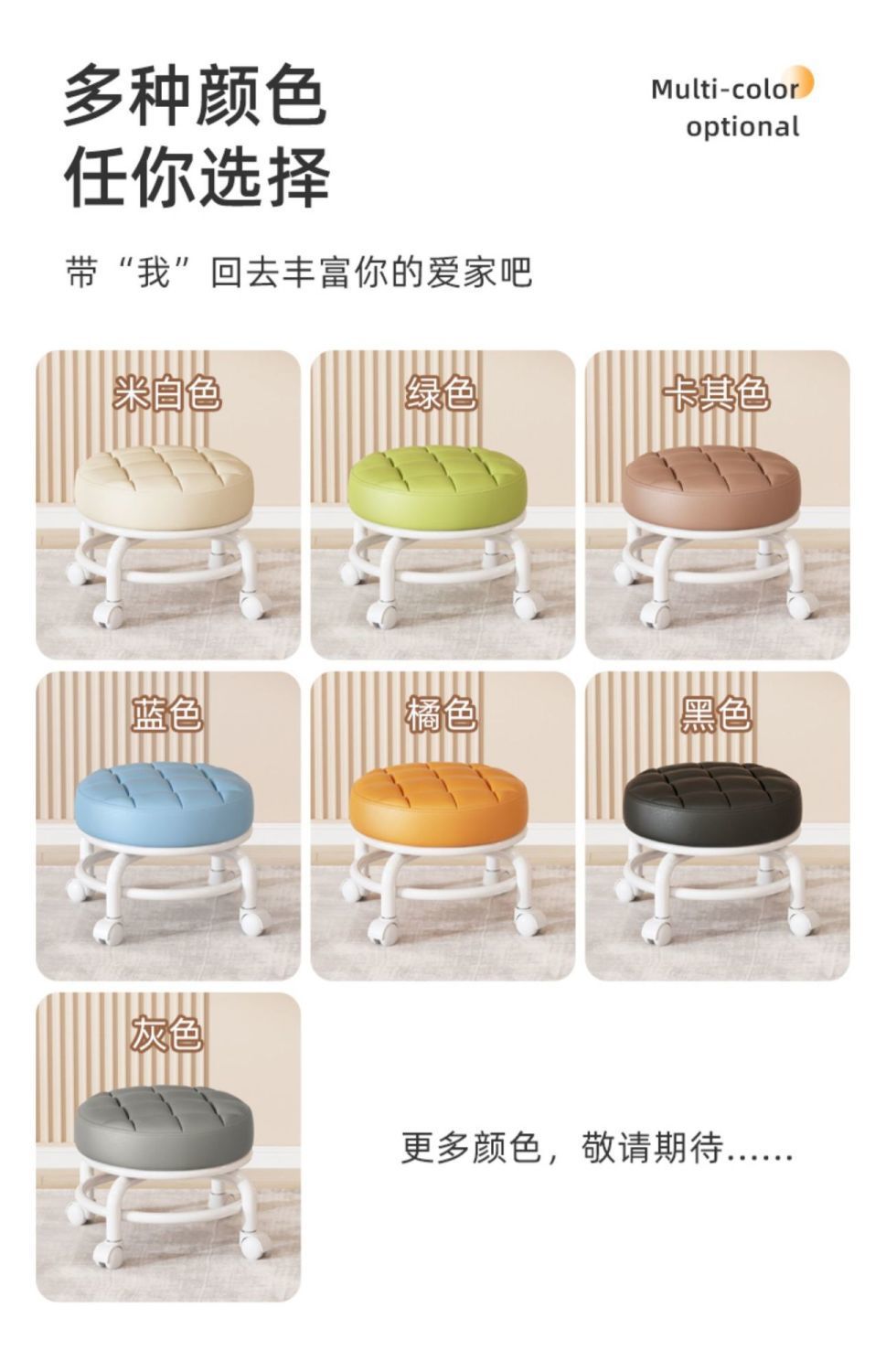 Universal Wheel Small Stool Pulley Low Stool Rotatable Mobile Chair Household Small Bench Rental Room round Stool