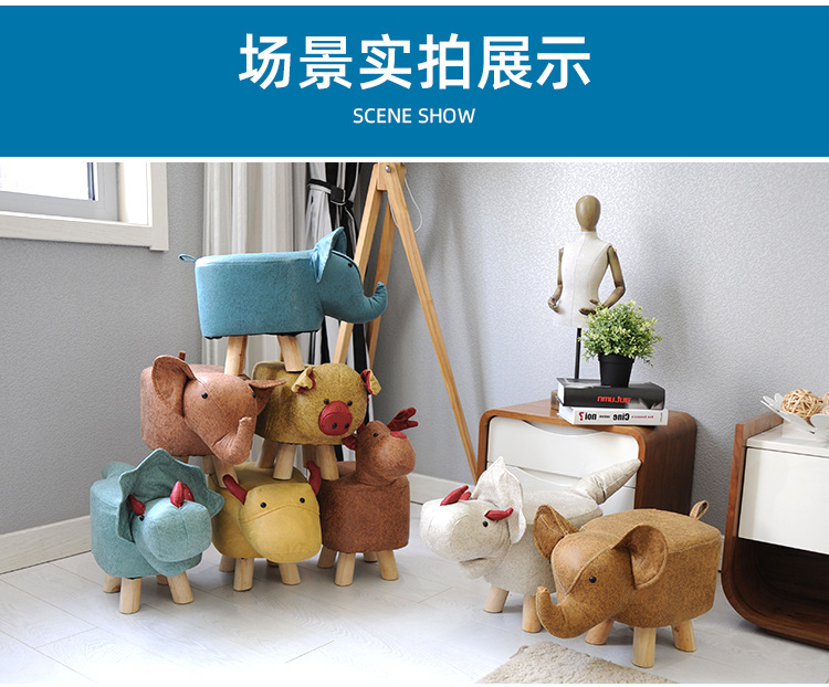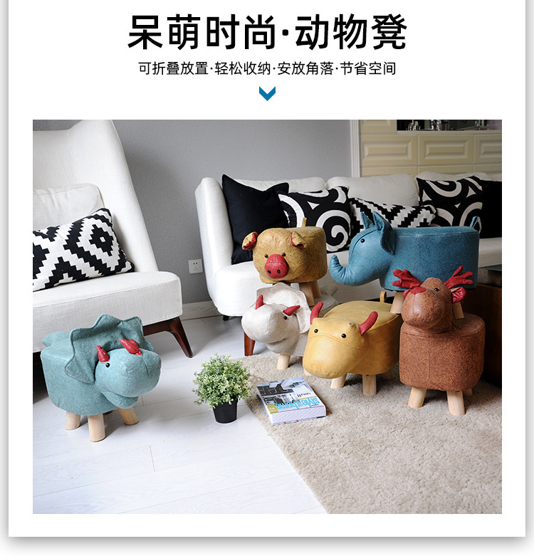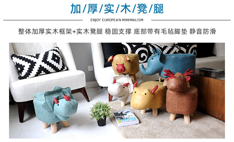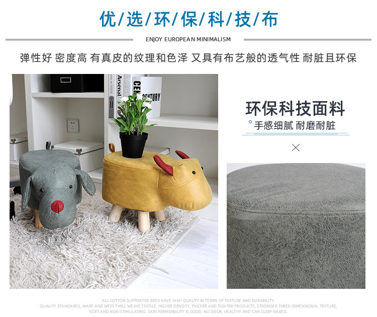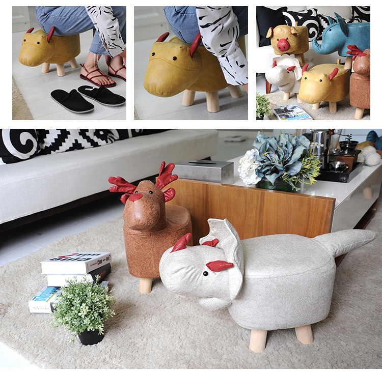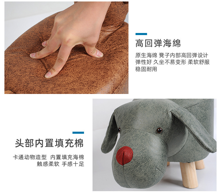 Faux Leather Solid Wood Stool Internet Celebrity Cute Pet Fashion Footstool Sofa Foot Bench Household Animal Stool